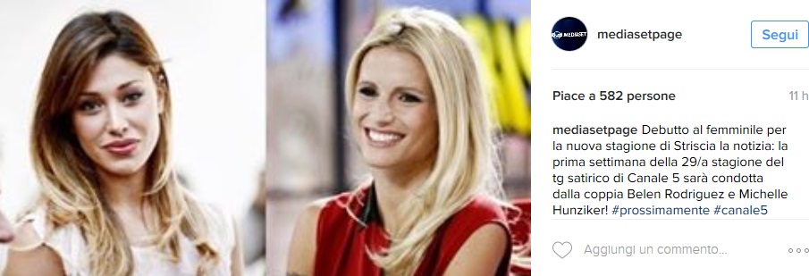 MILANO – Michelle Hunziker e Belen Rodríguez: conduttrici Striscia La Notizia. Notizia bomba in quel di Mediaset: Michelle Hunziker e Belen Rodríguez condurranno insieme la prima settimana di Striscia La Notizia. Dopo diverse stagioni in cui la notizia di Belen a Striscia correva tra i corridoi, questa volta -scrive Fanpage– ad ufficializzare la cosa è stata proprio Michelle, già al timone del programma da diverse stagioni. Attraverso una nota diffusa poche ore fa, Michelle Hunziker fa sapere: