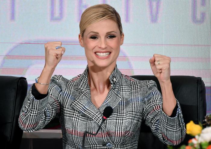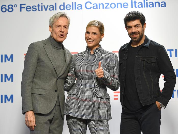Intanto, in occasione della conferenza stampa di presentazione del festival, Michelle Hunziker ha sorpreso tutti indossato un completo Ermanno Scervino classico e molto elegante: giacca e pantaloni in tweed e principe di galle sui toni del grigio.