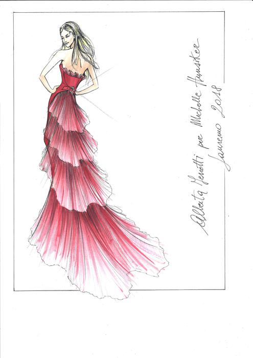 BOZZETTO ABITO ALBERTA FERRETTI PER MICHELLE HUNZIKER PER PRIMA SERATA