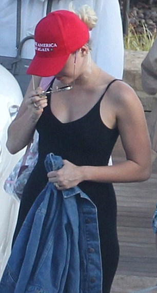 Come spiega il Daily Mail il cappello è un ovvia parodia di quelli che indossano i sostenitori di Trump in cui c’è scritto “rendi di nuovo l’America grande”.
