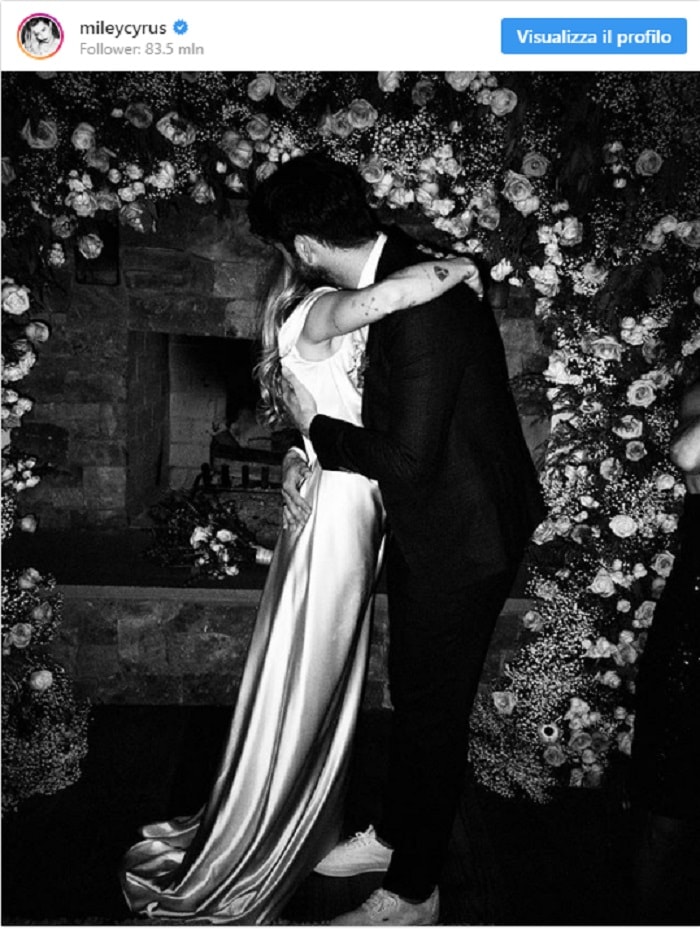 Poi, non nascondendo una certa ironia, riferendosi alla differenza di altezza,la cantante scrive: “Grazie per abbassarti sempre per abbracciarmi. Ti prometto che ti verrò incontro nel mezzo alzandomi sulle punte”. Ecco a seguire le foto, con la Cyrus che mostra il suo abito di nozze da una nuova prospettiva.