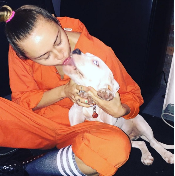 Miley Cyrus pomicia col suo nuovo cane FOTO Instagram