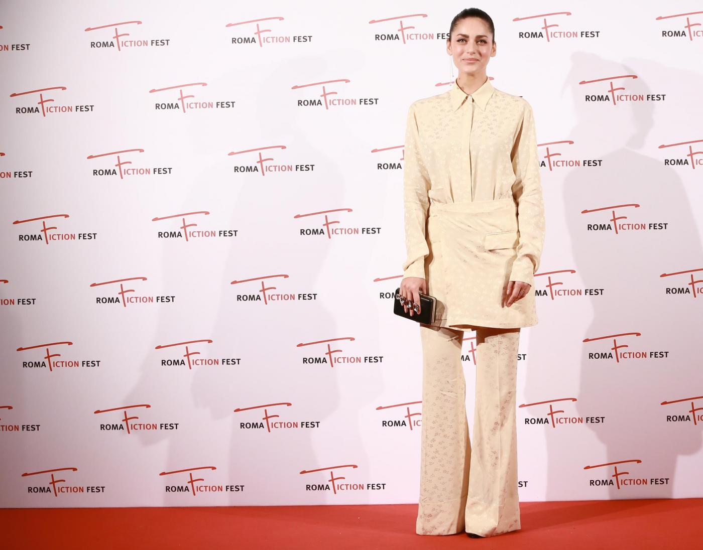 ROMA – Miriam Leone, look castigato al Roma Fiction Fest, festival internazionale dedicato alla fiction televisiva che si svolge a Roma dal 2007. L’attrice ha indossato un elegante completo color crema, abbinato a sandalo e bianchi e pochette nera. Poco trucco e coda di cavallo, come sempre Miriam è apparsa affascinante sul red carpet. Nata ad Arcireale (Sicilia), la Leone, 30 anni, è anche modella e conduttrice televisiva. Nel 2008 ha vinto il concorso di bellezza Miss Italia.
