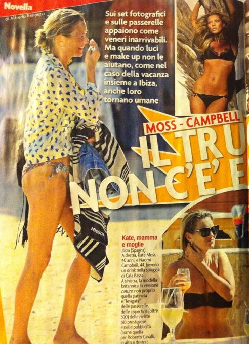 IBIZA (SPAGNA) – Naomi Campbell e Kate Moss irriconoscibili a Ibiza. Le due modelle, rispettivamente 44 e 40 anni, appaiono in versione nature sulla spiaggia di Cala Bassa, mentre sorseggiano un drink. Siamo abituate a vederle e considerarle delle “veneri inarrivabili”. In realtà, i fatti dimostrano che in assenza di make-up e ritocco fotografico, anche le due dive non vengono meno ai segni dell’età.