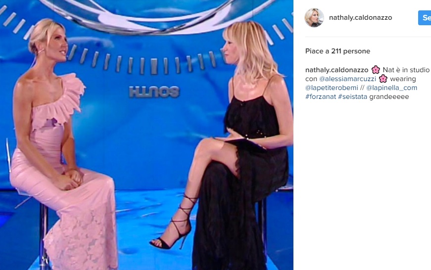 ROMA – Nathaly Caldonazzo, abito monospalla in similpelle rosa firmato La Petite Robe by Chiara Boni. Un modello con ruche e silhouette a sirena con ricamo floreale macramè, sfoggiato dall’ex naufraga dell’isola dei famosi per il suo rientro in studio a Milano. La showgirl è apparsa bella e raggiante. Merito anche del suo splendido outfit, sensuale e allo stesso tempo originale. Nathaly (età: 47 anni) è nata a Roma il 24 maggio 1969. Conosciuta anche come Nathaly Snell o Nathaly Caldonazzo, è un’attrice e showgirl italiana. E’ stata partner di Massimo Troisi (fino alla morte di lui). Tra i suoi ex ci sono anche Paolo Calissano, Stefano Bonaga e Pino Quartullo. La showgirl ha una figlia, Mia (così chiamata in onore di Mia Farrow, attrice statunitense), nata dalla sua relazione con l’imprenditore napoletano Riccardo Sangiuliano. Attualmente è legata ad Andrea Ippoliti, come si legge dalle rispettive pagine social.