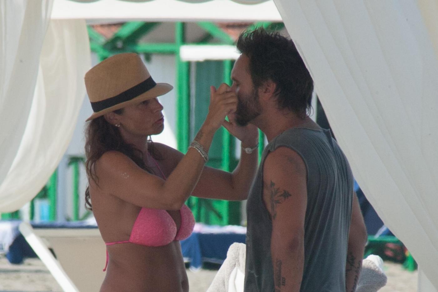 Foto Lapresse - Omar Abd el Naser 05/08/2015 - Marina di Pietrasanta (LU), Italia Nek e la moglie Patrizia al mare a Marina di Pietrasanta. Prima una “passeggiata tra le onde”, poi lei si prende cura del marito passandogli la crema solare sul viso. Gossip Nella foto: Patrizia Vacondio Photo Lapresse - Omar Abd el Naser 05/08/2015 - Marina di Pietrasanta (LU), Italy Nek and her wife Patrizia, enjoy a sunny day at the beach. Gossip In the picture: Patrizia Vacondio