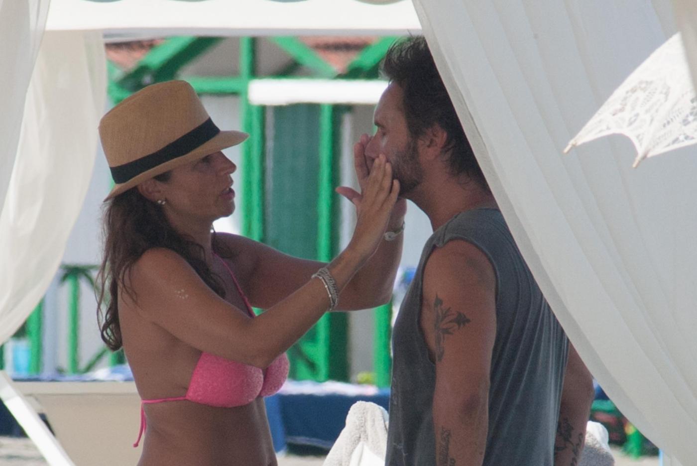 Foto Lapresse - Omar Abd el Naser 05/08/2015 - Marina di Pietrasanta (LU), Italia Nek e la moglie Patrizia al mare a Marina di Pietrasanta. Prima una “passeggiata tra le onde”, poi lei si prende cura del marito passandogli la crema solare sul viso. Gossip Nella foto: Nek, Patrizia Vacondio Photo Lapresse - Omar Abd el Naser 05/08/2015 - Marina di Pietrasanta (LU), Italy Nek and her wife Patrizia, enjoy a sunny day at the beach. Gossip In the picture: Nek, Patrizia Vacondio