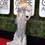 LOS ANGELES – Nicole Kidman ai Golden Globes indossa un abito Alexander McQueen spumeggiante e scintillante che fa parte della collezione primavera/estate 2017 . Si tratta di un abito a “coda di pesce” abbellito da delle sovrapposizioni color metallo. Le maniche sono “a freddo”: per ovviare alla spalla scoperta, la Kidman indossa dei lunghi guanti che come scrive il Daily Mail danno all’abito un’atmosfera vintage.