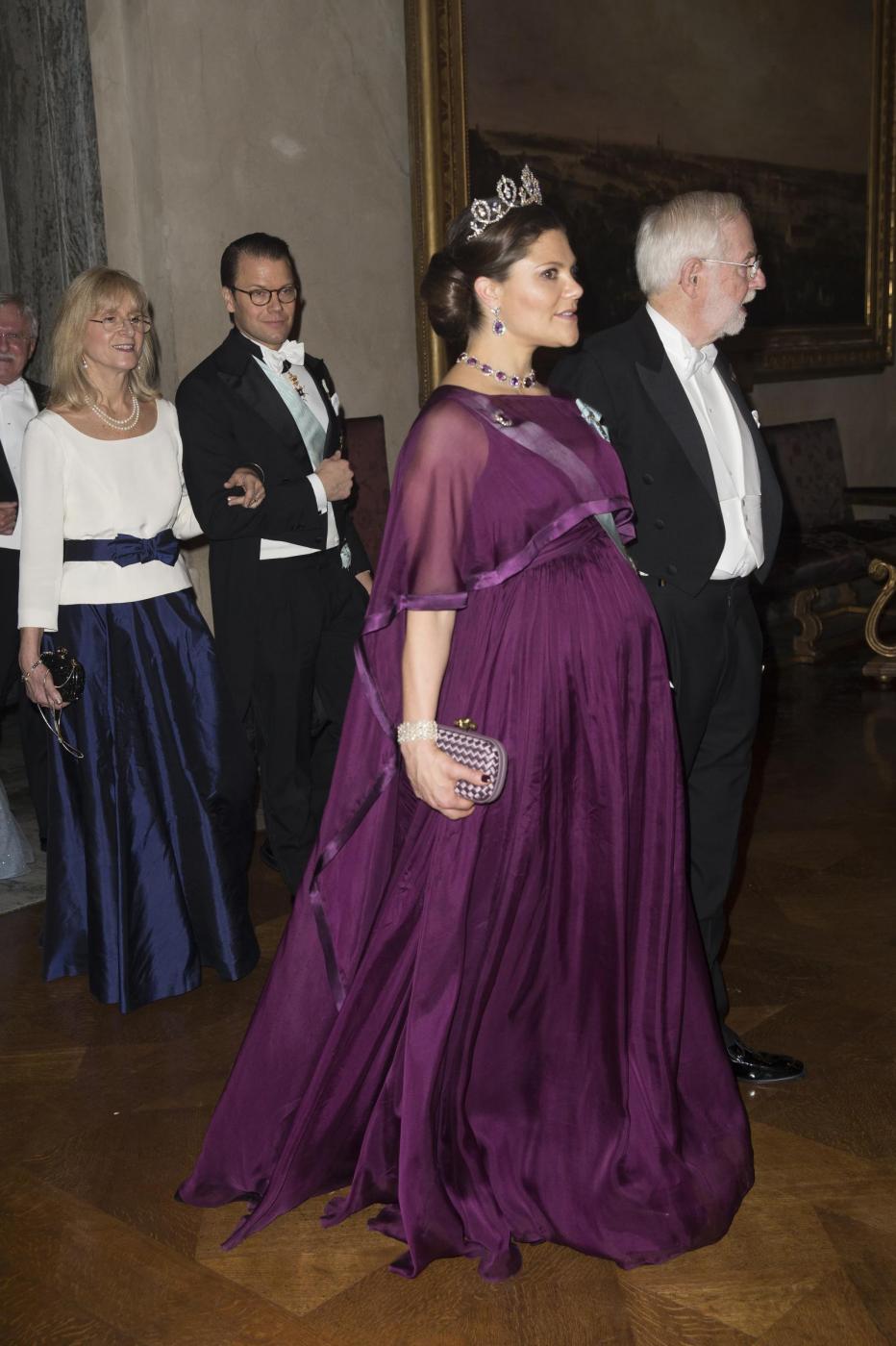 Victoria, incinta del secondo figlio, per l’occasione ha sfoggiato un abito lungo viola con dei gioielli abbinati. Tra i capelli spiccava una grande spilla in ametista e diamanti. Anche le altre due principesse hanno sfoggiato abiti da favola: Madeleine, sorella minore di Victoria, in un elegante abito lungo grigio perla, mentre la moglie del principe Filippo, Sofia, aveva un abito blu notte a vita alta che le ha permesso di non appesantire la pancia che sta crescendo dato che è anch’essa in dolce attesa.