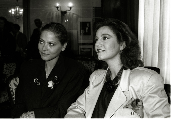 19890506-ROMA-Hotel Ambasciatori. Le attrici Ornella Muti (S) e Stefania Sandrelli (D) fotografate a margine della manifestazione della consegna dei premi 'Nastro d'Argento 1989'. ROLANDO FAVA/ANSA ARCHIVIO