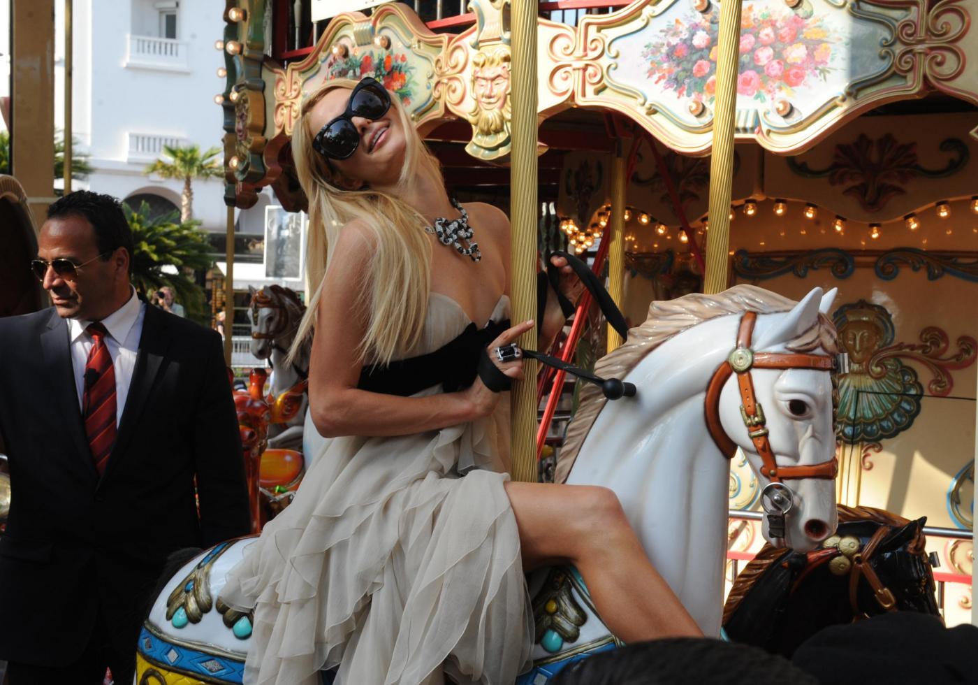 Paris Hilton poses for famous photographer Ellen Von Unwerth on Majectic Hotel Beach in Cannes, France, on May 24, 2012, as part of the 65th Cannes Film Festival