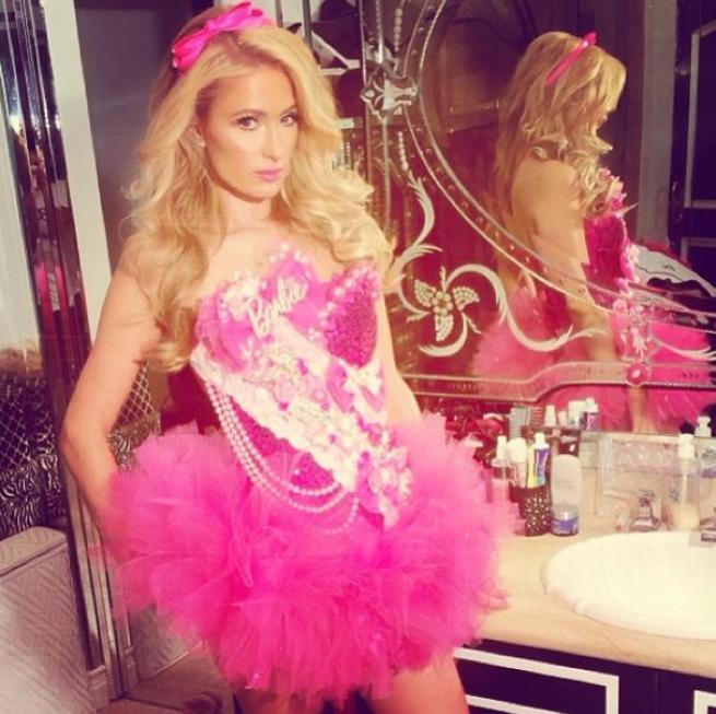 NATIONAL PHOTO GROUPParis Hilton sticks her tongue out while dressing like Miley Cyrus at Hugh Hefner's Playboy Mansion Halloween party.Mandatory Credit: Interstar/NPG.comJob: 102713K2Non-Exclusive October 26th, 2013 Los Angeles, CANPG.com LaPresseOnly Italy