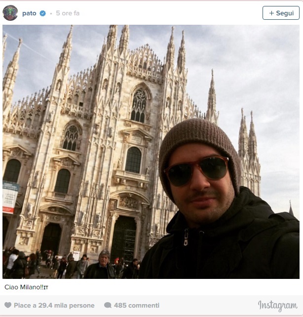 Il brasiliano, al di là della vita sentimentale e dello shopping natalizio, sembra aver voluto mandare un messaggio alla sua ex squadra facendosi un selfie in piazza Duomo. Ochialoni scuri e cuffietta di lana, Pato commenta scrivendo “Ciao Milano!”, scatenando naturalmente le reazioni dei suoi tifosi che gli chiedono di tornare nella squadra con cui ha giocato dal 2007 al 2013.