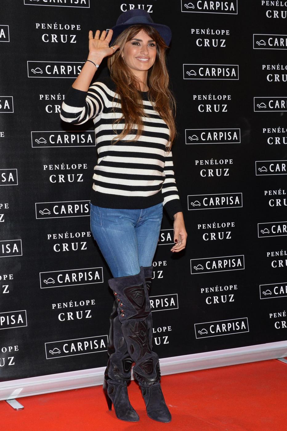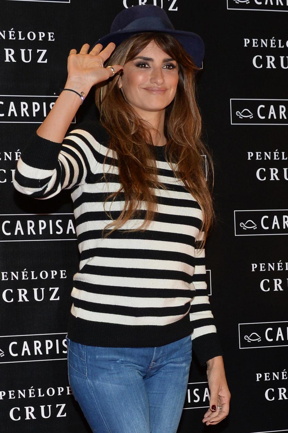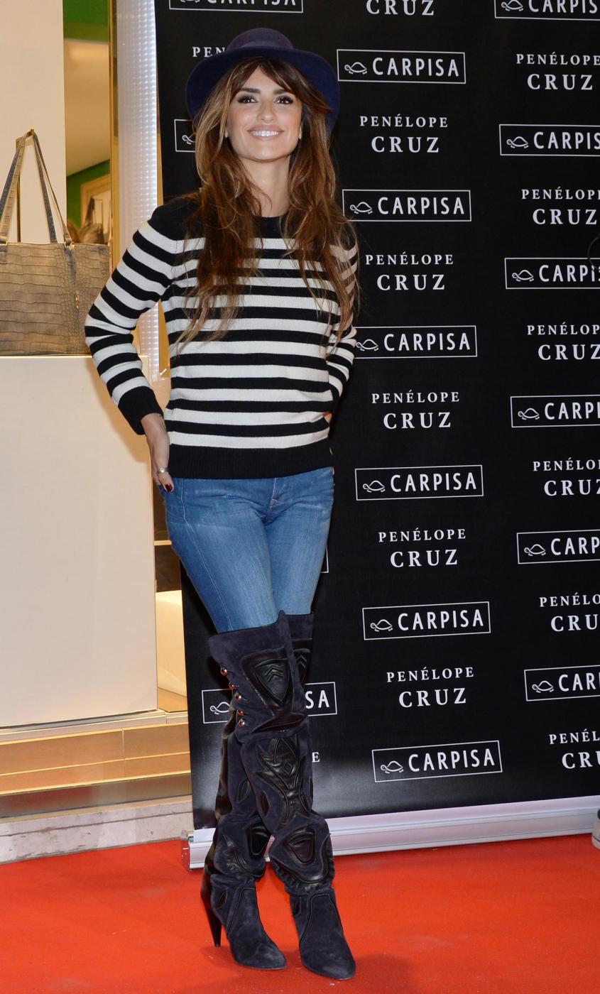 Penelope, come già fatto per Agent Provocateur ha creato insieme alla sorella una capsule collection per Carpisa composta da sei linee declinate in diversi modelli e colori. Al negozio Carpisa si è presentata con un look molto semplice: jeans e stivali alti, una maglietta bianca e nera a strisce orizzontali, un cappello in testa (le foto LaPresse in fondo all’articolo).