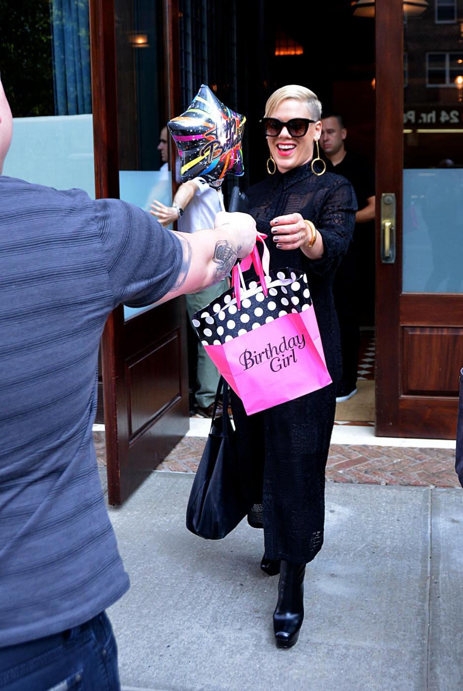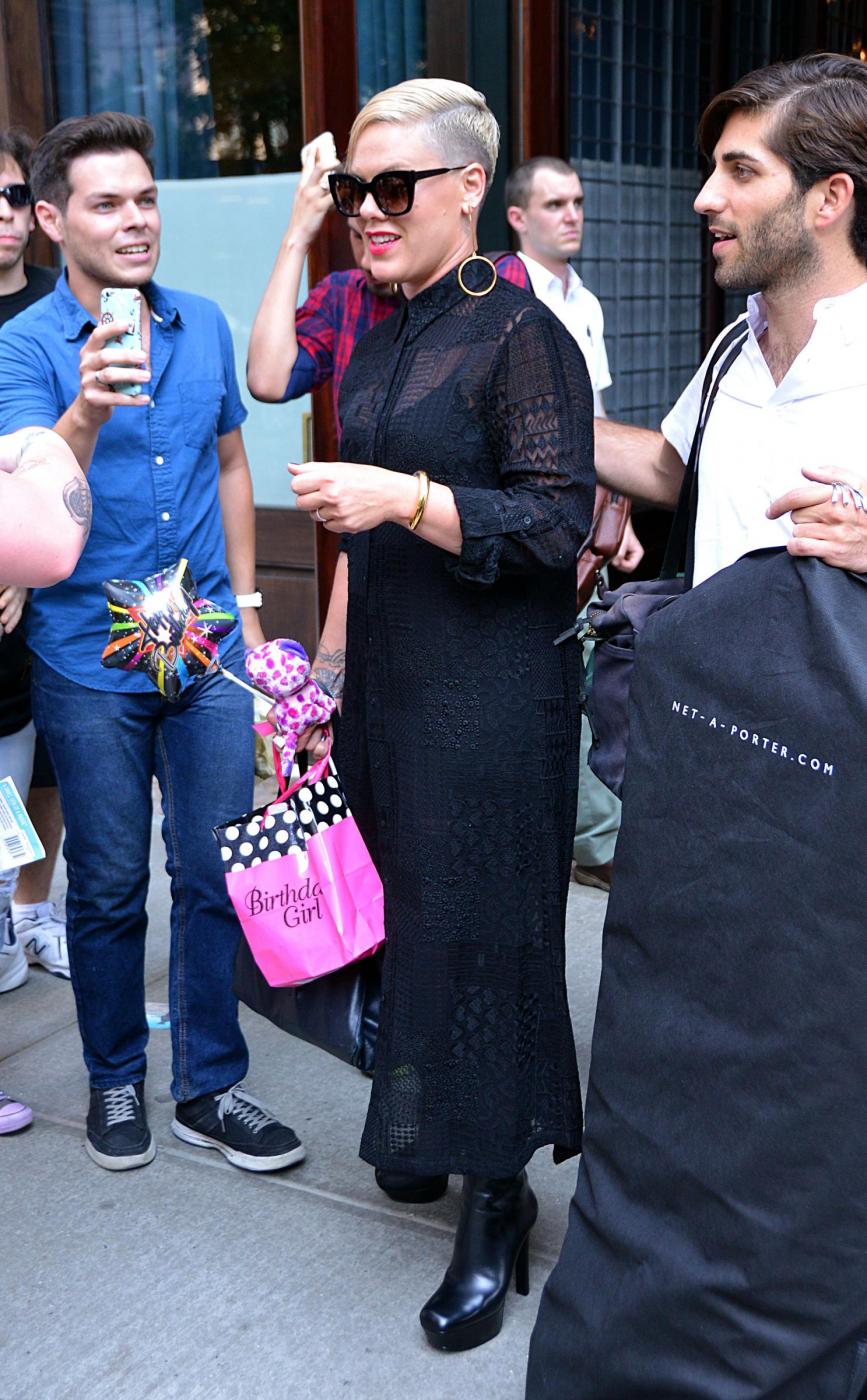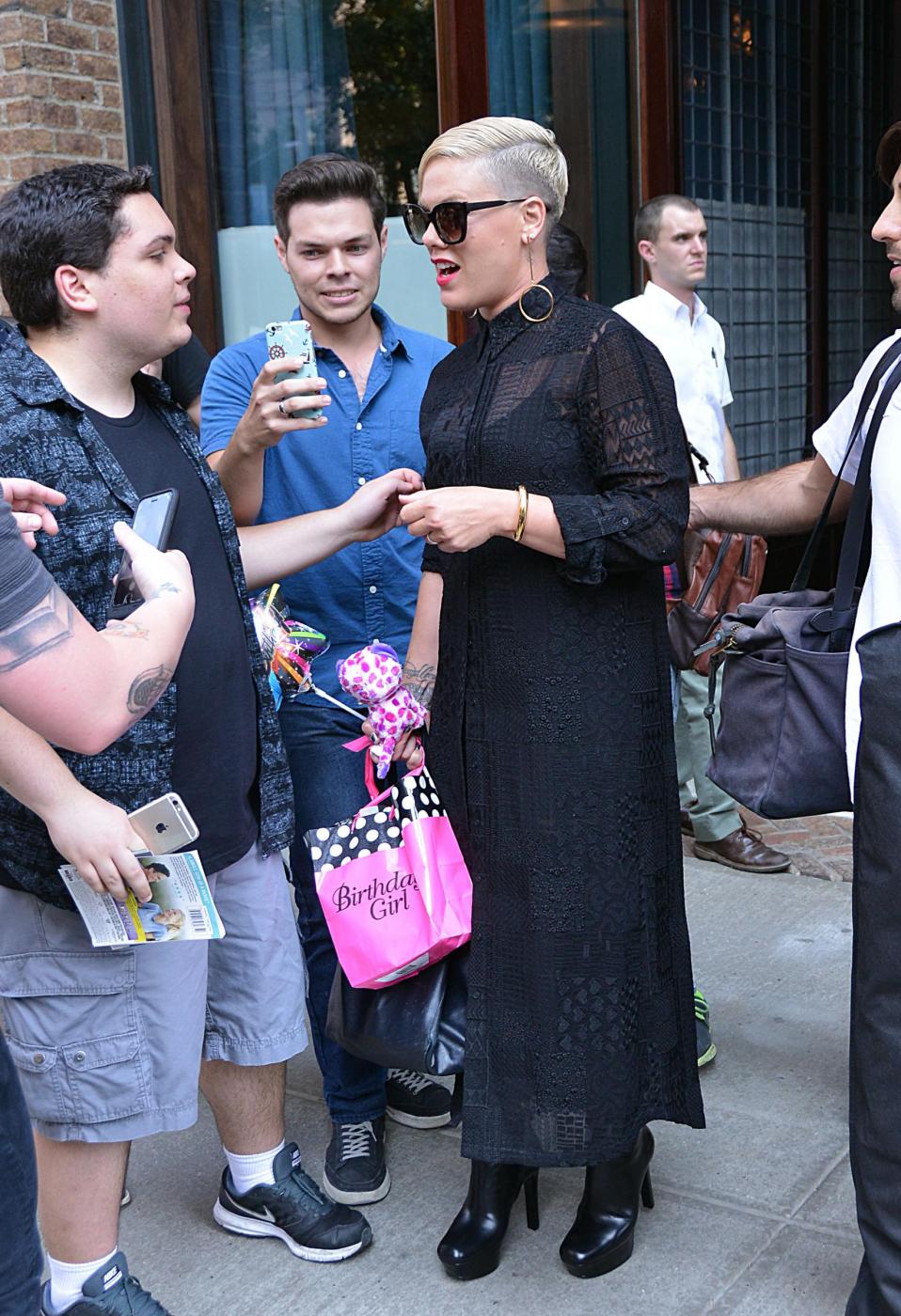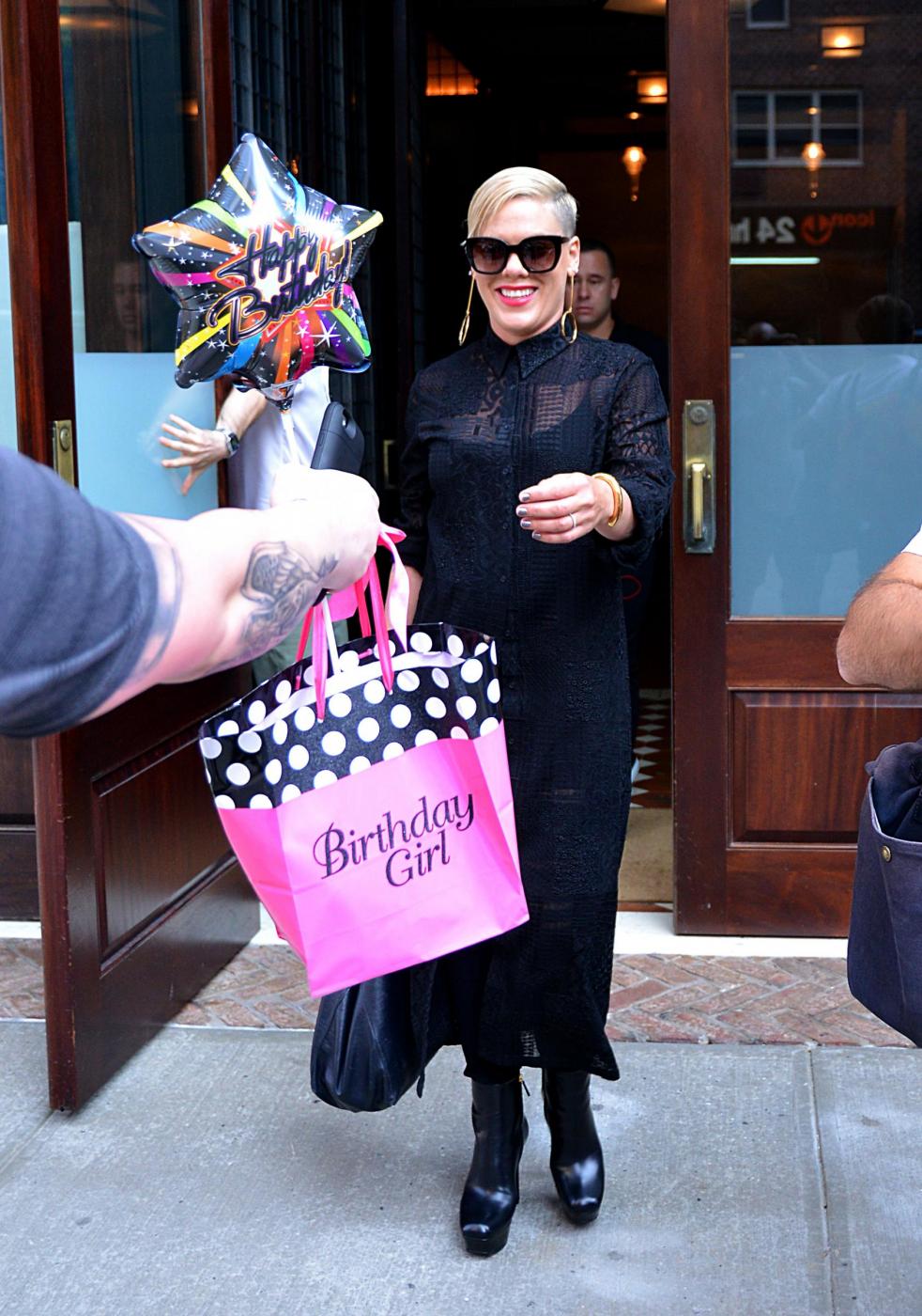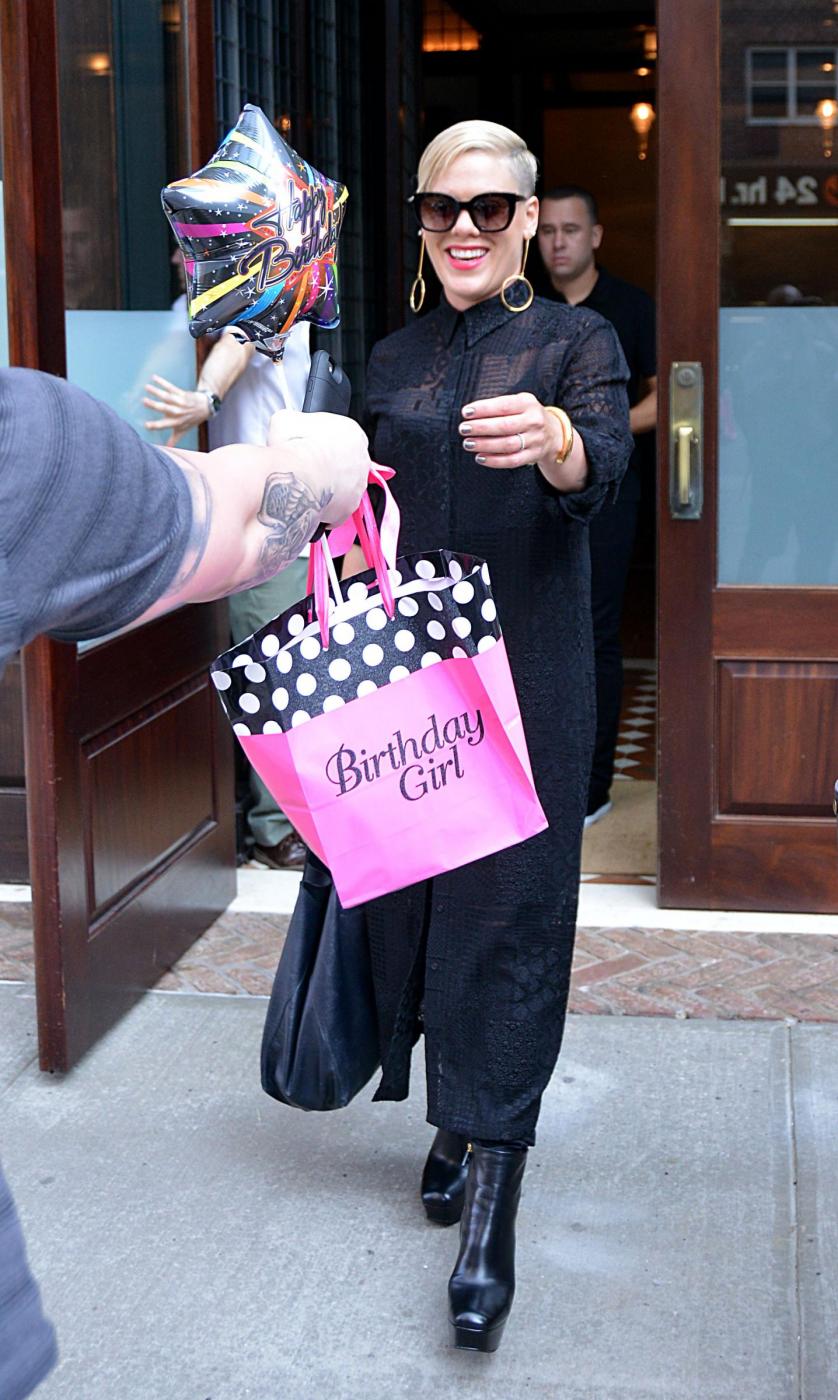 NEW YORK – Pink paparazzata in strada a New York mentre riceve gadget e regali dai fan che incontra (guarda la gallery LaPresse in fondo a questo articolo). E’ il giorno del suo compleanno: Pink infatti, oggi compie 36 anni.
