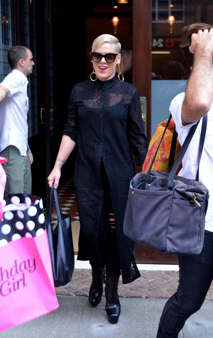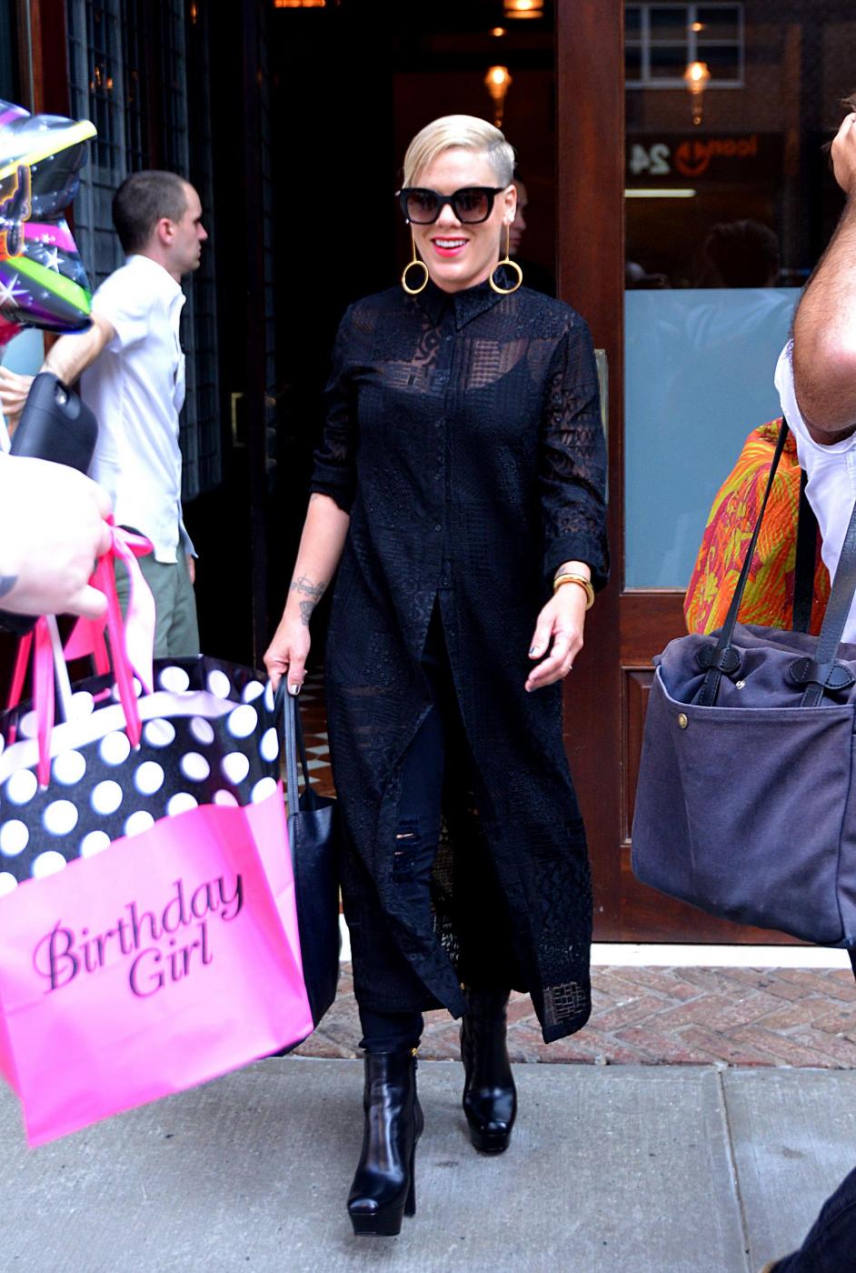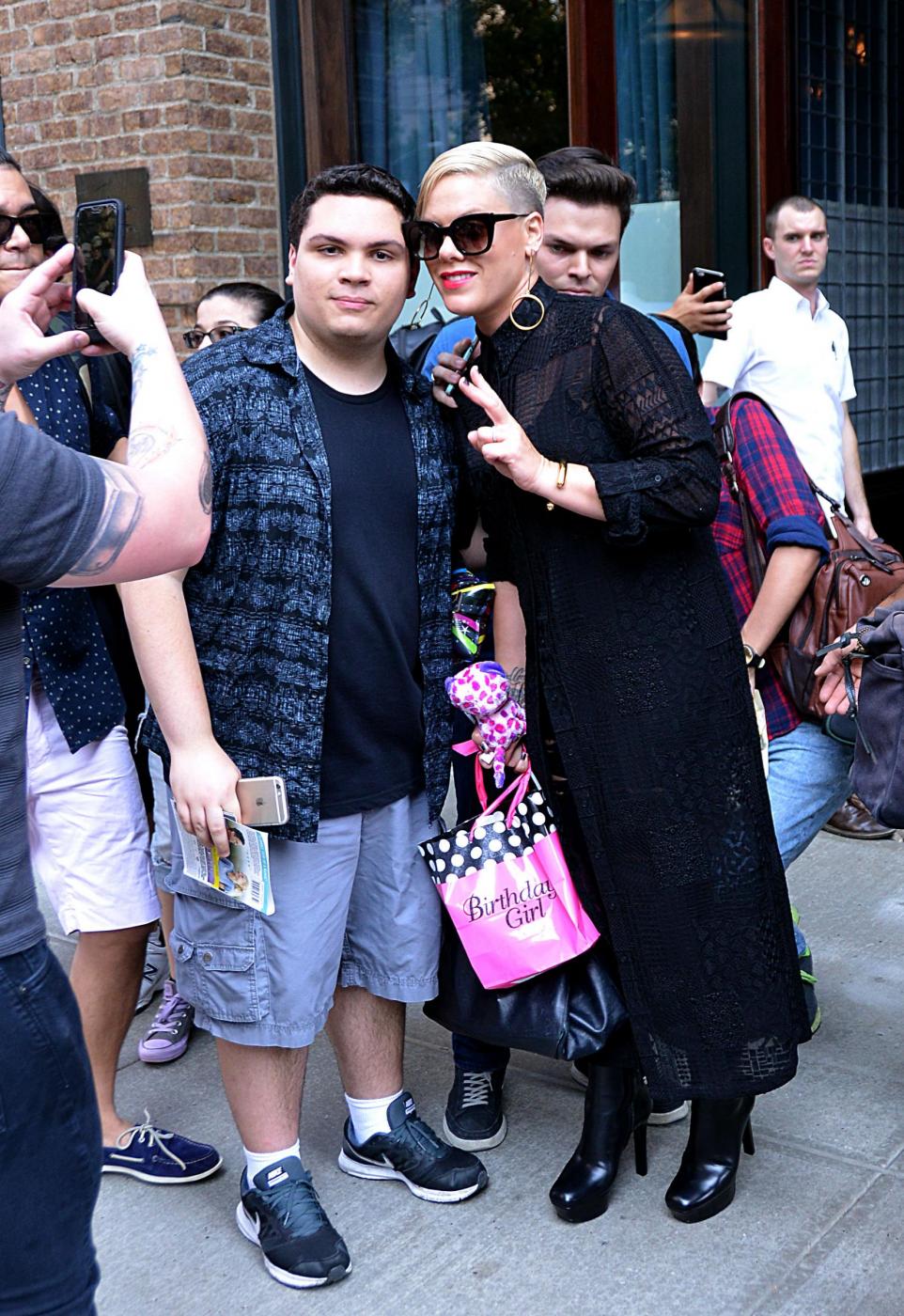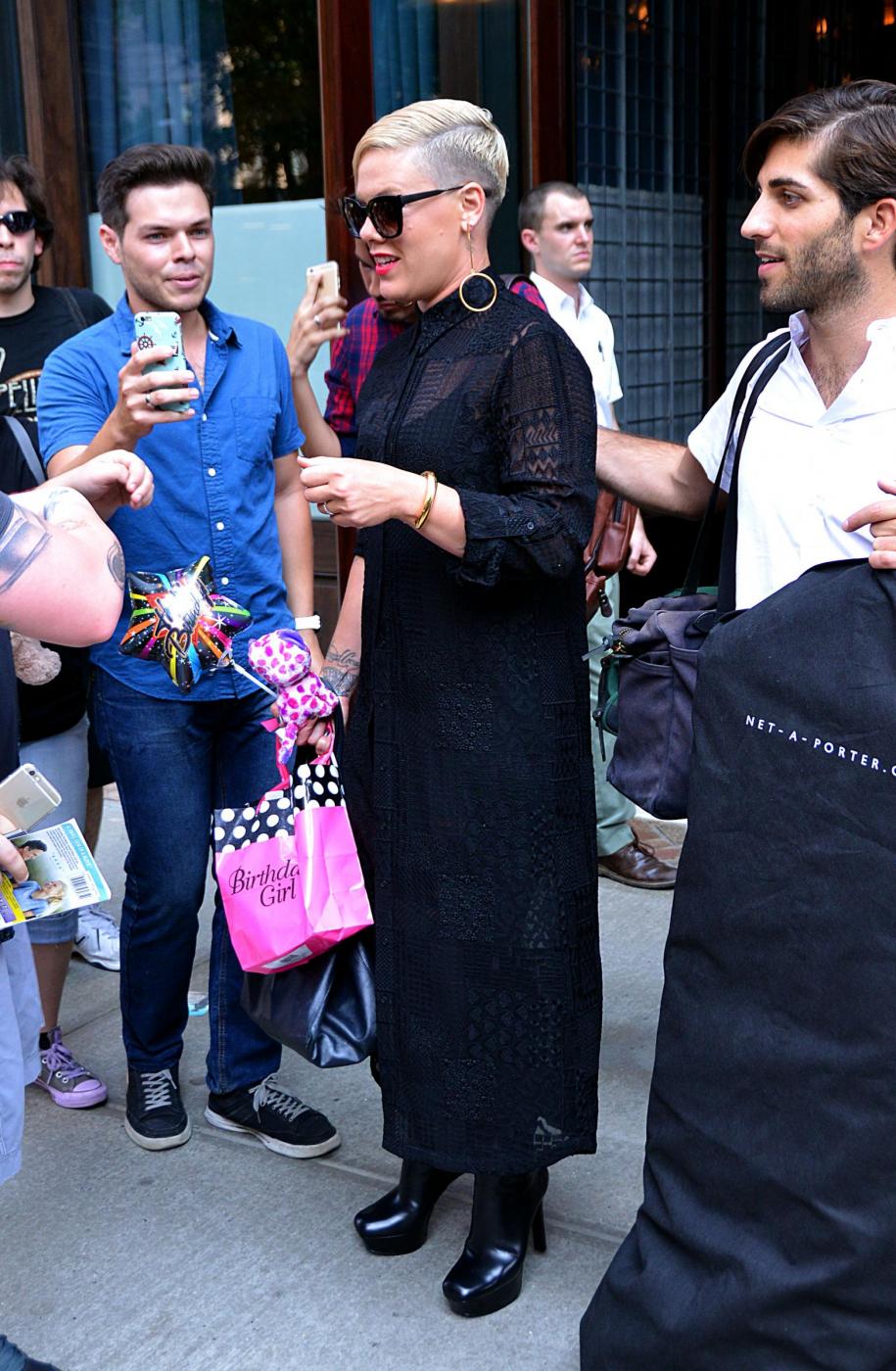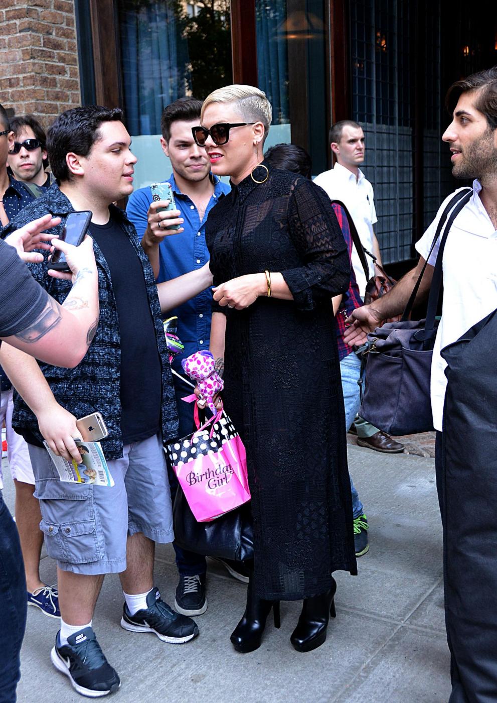 NEW YORK – Pink paparazzata in strada a New York mentre riceve gadget e regali dai fan che incontra (guarda la gallery LaPresse in fondo a questo articolo). E’ il giorno del suo compleanno: Pink infatti, oggi compie 36 anni.
