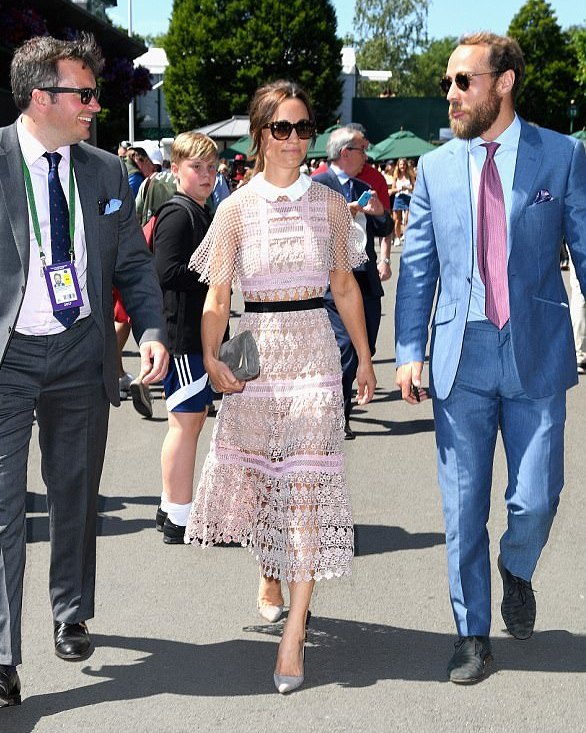 LONDRA – Pippa Middleton: abito in pizzo vedo non vedo a Wimbledon FOTO. Dopo Kate, anche Pippa fa la sua apparizione a Wimbledon: la sorellina della Duchessa ha assistito alla terza giornata del torneo di tennis più famoso d’Inghilterra e per l’occasione ha scelto un delizioso abitino rosa dallo stile bon ton firmato Self Portrait. Il vestito, lungo fino alla caviglia, era in pizzo trasparente. Nonostante l’effetto vedo non vedo, Pippa è apparsa super chic: merito del suo portamento elegante, degli accessori sobri e dal make up neutro.