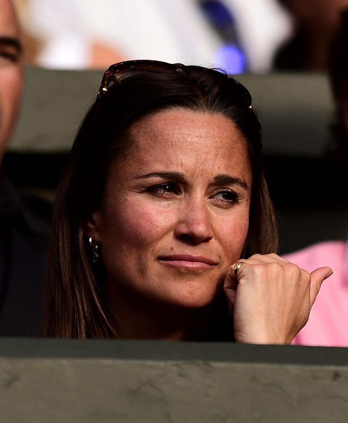 Pippa Middleton watches the action on centre court during day Seven of the Wimbledon Championships at the All England Lawn Tennis and Croquet Club, Wimbledon. PRESS ASSOCIATION Photo. Picture date: Monday July 6, 2015. See PA Story TENNIS Wimbledon. Photo credit should read: Adam Davy/PA Wire. RESTRICTIONS: Editorial use only. No commercial use without prior written consent of the AELTC. Still image use only - no moving images to emulate broadcast. No superimposing or removal of sponsor/ad logos. Call +44 (0)1158 447447 for further information.