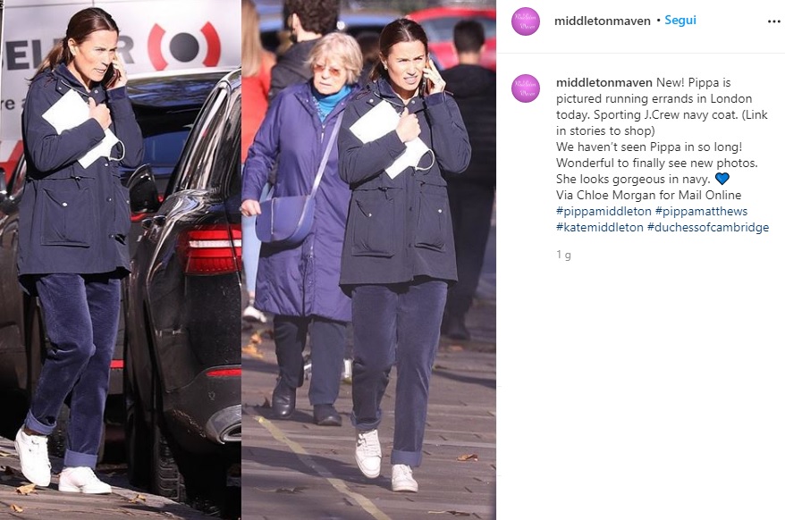 Anche Pippa ha ceduto al comfy look, protagonista assoluto del momento, soprattutto a causa delle restrizioni da coronavirus, che hanno messo il guardaroba elegante in pausa.