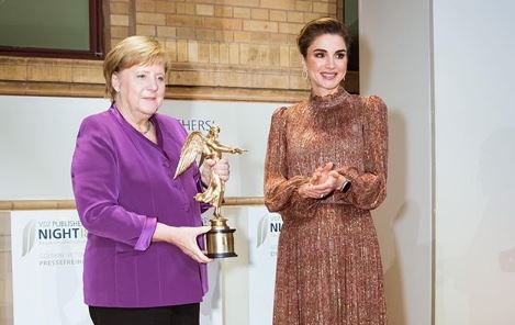 “È stato un onore presentare oggi alla cancelliera Angela Merkel il Golden Victoria Honorary Award per la leadership politica a Berlino. Di volta in volta, la resilienza e la risolutezza della cancelliera hanno permesso alla Germania non solo di tracciare un percorso sicuro, ma di aiutare a guidare la comunità globale durante la tempesta. Tale leadership richiede grande coraggio. Coraggio politico. Coraggio morale. Il coraggio delle proprie convinzioni” ha scritto Rania sulla sua pagina Instagram, dove ha condiviso lo scatto in cui si mostra insieme a Merkel.