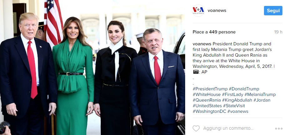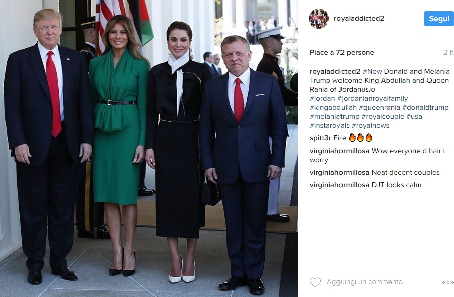 Dopo una calorosa stretta di mano, il presidente Usa ha avuto un bilaterale nello Studio Ovale con il capo di stato giordano. Successivamente, Melania e Rania – insieme al segretario all’istruzione Betsy DeVos, hanno visitato una scuola di Washington. Melania Trump e Rania di Giordania hanno passato molto tempo insieme durante l’incontro e sono apparse affiatate e cordiali.