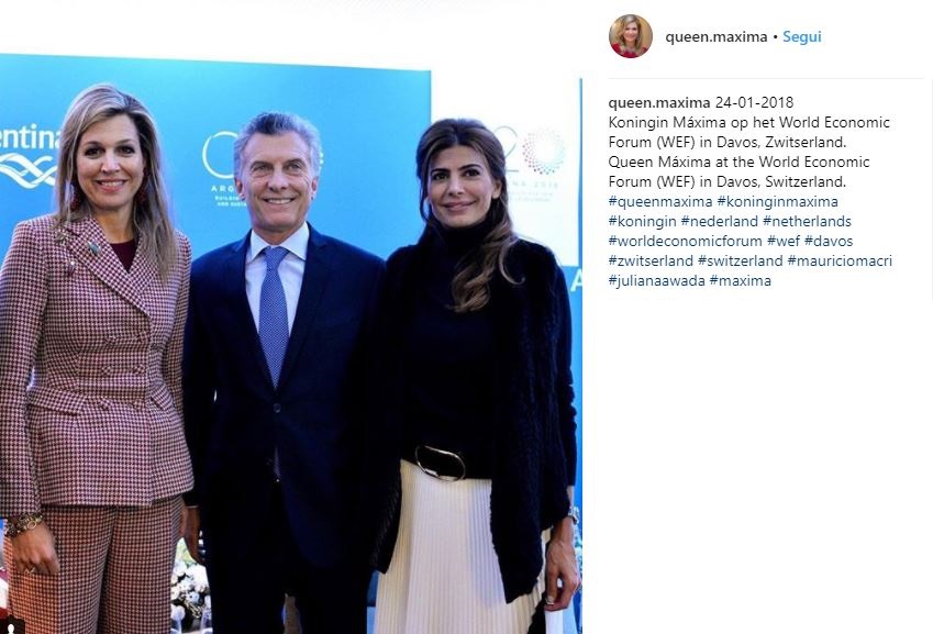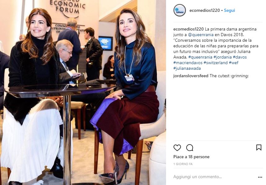 Rania di Giordania, Juliana Awada, Maxima d’Olanda a Davos. Le due regine e la first lady argentina sono tra le ospiti del Forum economico mondiale (Wef) a Davos, in Svizzera. Il World Economic Forum si considera “impegnato a migliorare la condizione del mondo”, sforzandosi di essere imparziale e privo di vincoli di natura politica, ideologica o nazionale.