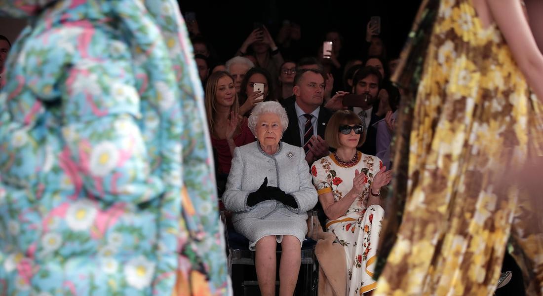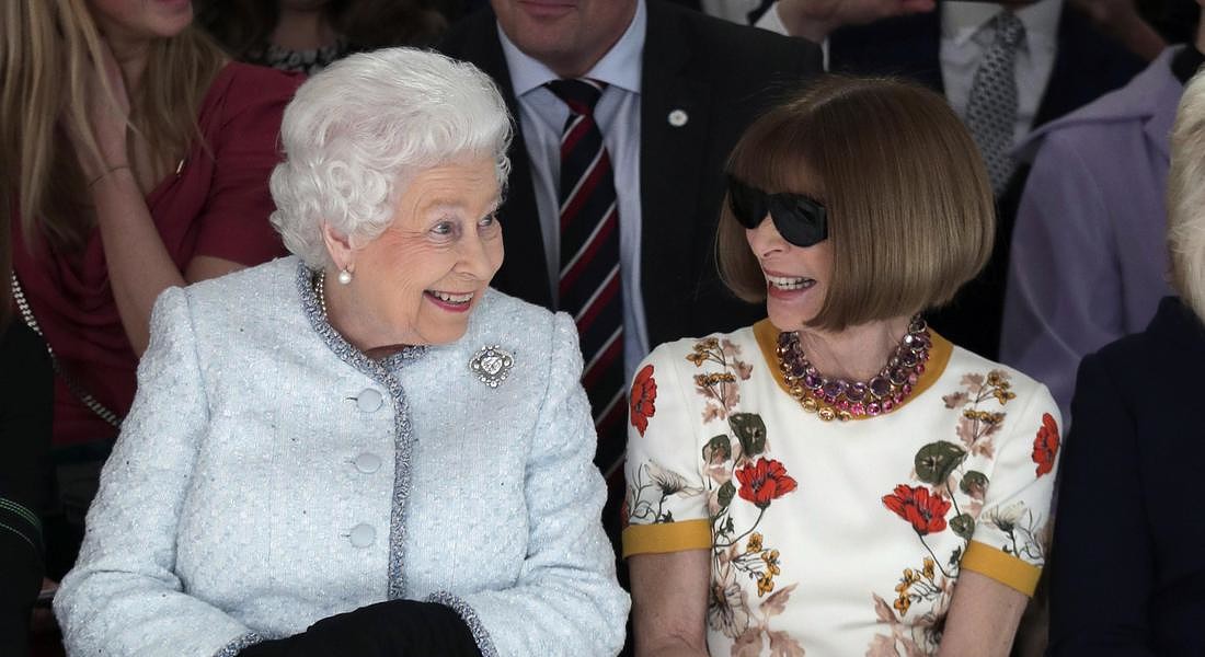 La regina Elisabetta ha lasciato tutti a bocca aperta quandoa sorpresa si è seduta in prima fila, accanto ad Anna Wintour, alla sfilata del designer Richard Quinn. Per la Sovrana è stata la prima volta in assoluto che ha partecipato ad una sfilata di moda. Ciò che i critici inglesi non riescono a perdonare ad Anna Wintour, è il fatto che la direttrice di Vogue, spesso soprannominata “la regina di ghiaccio del mondo della moda”, non abbia levato gli occhiali neri, nemmeno a cospetto della Sovrana d’Inghilterra. C’è da dire che Anna Wintour difficilmente toglie i suoi maxi occhiali neri ma, di certo, davanti alla regina Elisabetta avrebbe potuto fare una eccezione. Si legge sul sito celebdirtylaundry: