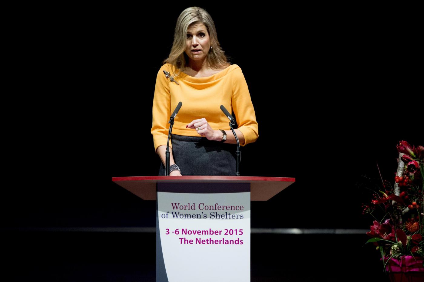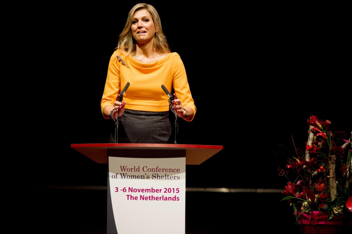AIA (OLANDA) – Regina Maxima d’Olanda, gonna a matita e gambe in vista FOTO. La grande paura è passata e Maxima, regina d’Olanda, non ha rinunciato a partecipare al grande convegno sulle donne rifugiate che ha avuto luogo all’Aia, nel Paesi Bassi. Nei giorni scorsi la regina Maxima è stata colpita dalla nefrite, malattia che l’ha costretta in ospedale, ricoverata per 3 giorni, a seguito di febbre alta e dolori molto forti per tutto il corpo. Ora il peggio sembra essere passato e Maxima ha interrotto la convalescenza per partecipare al convegno che, visto il tema, a lei era molto a cuore.