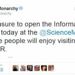 “E’ un piacere inaugurare la mostra Information Age al Museo della Scienza e spero che alla gente piacerà visitarla”, ha scritto, ottenendo in poche ore più di 10000 retweet.