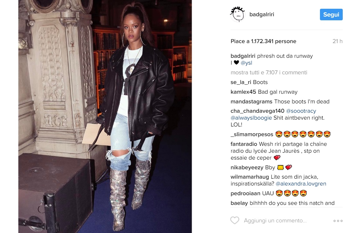 PARIGI – Rihanna è la prima ad indossare gli stivali Saint Laurent che abbiamo adorato FOTO. Dal primo momento in cui ho visto sfilare sulla passerella a/i 2017-18 Sain Laurent quei meravigliosi stivali morbidi tempestati di cristalli scintillanti, sapevo che sarebbero stati un vero successo tra le star. E infatti non ho sbagliato.