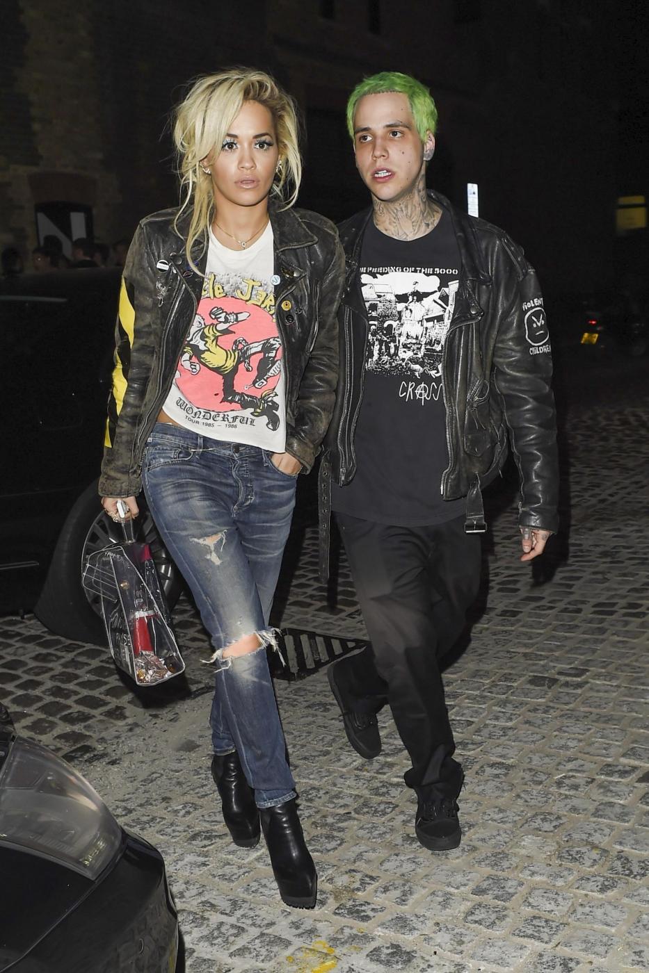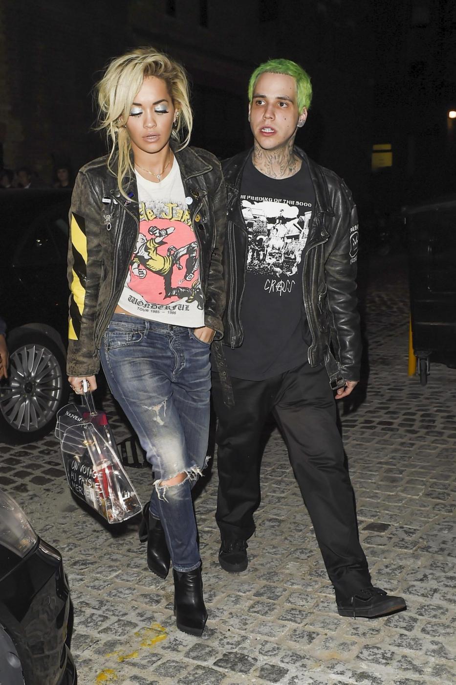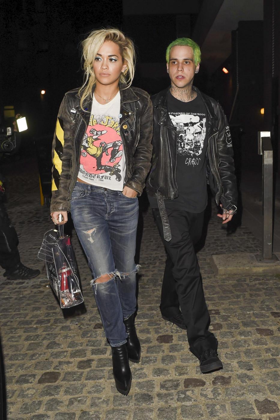 LONDRA – Rita Ora insieme al fidanzato Ricky Hil a Londra. La coppia è stata paparazzata all’uscita del ristorante Chiltern Firehouse. Jeans, giacchetto di pelle, borsa trasparente e capelli spettinate per lei, capigliatura verde per lui.