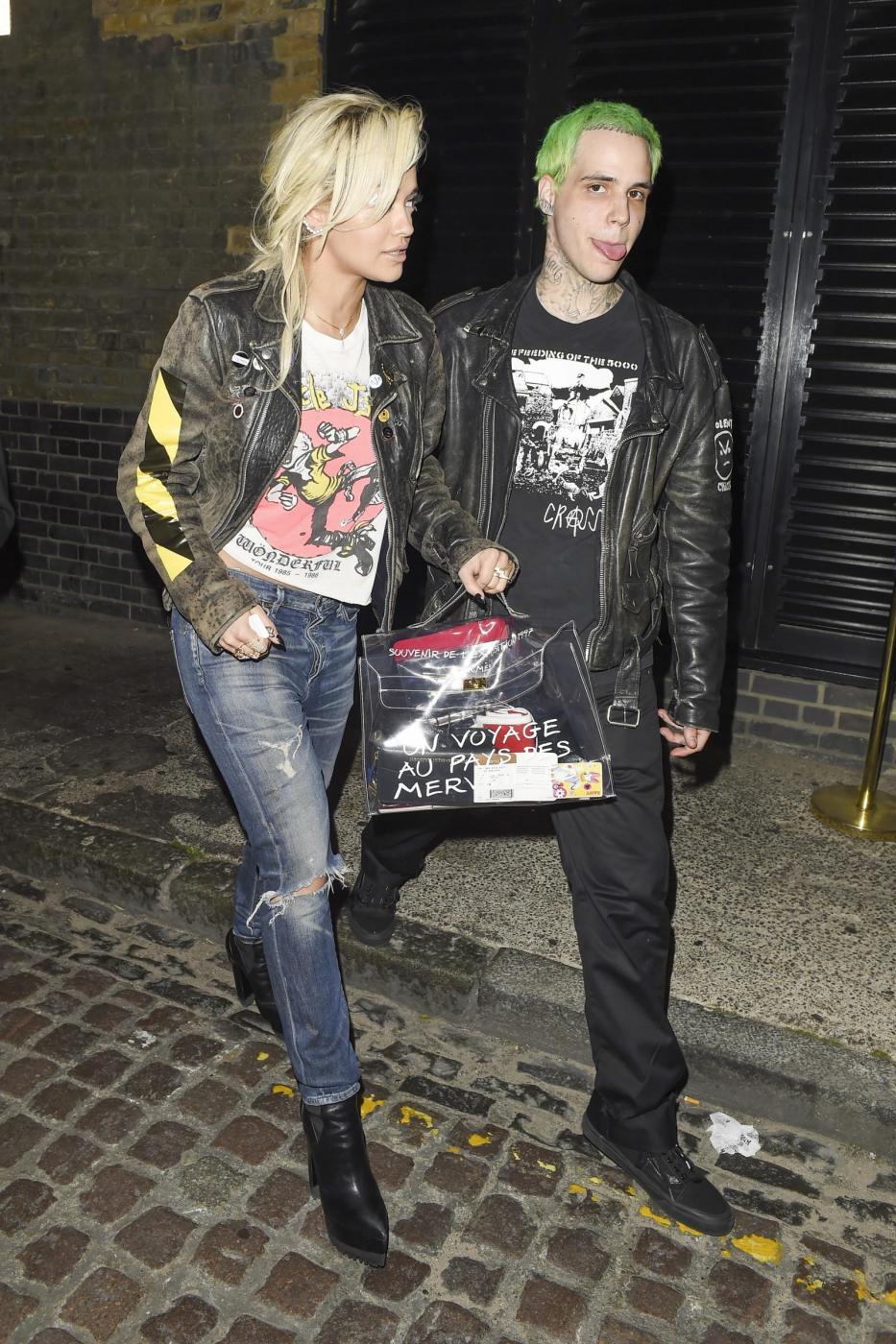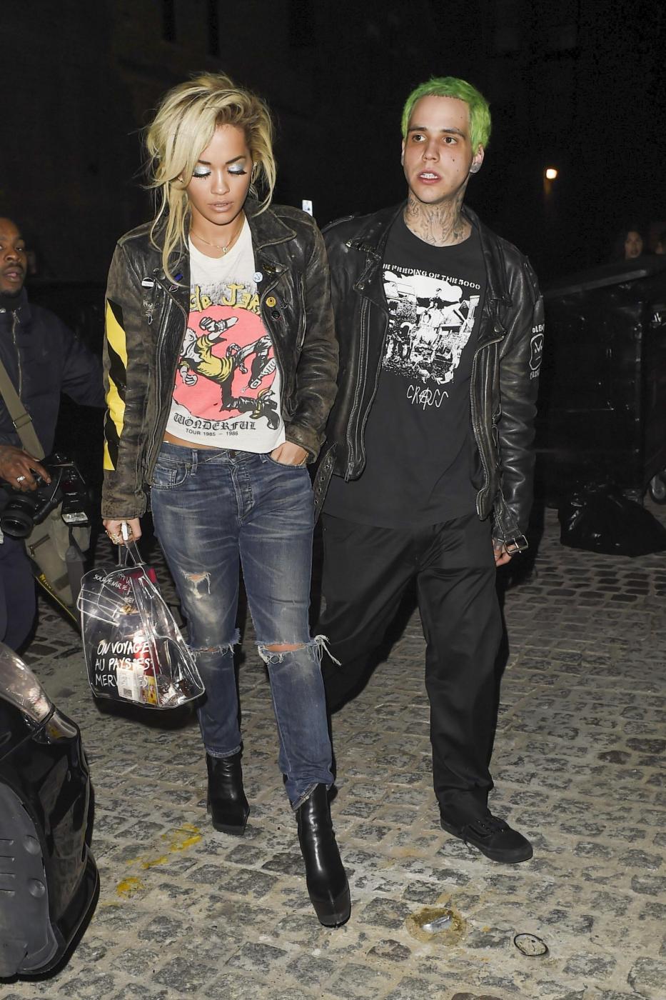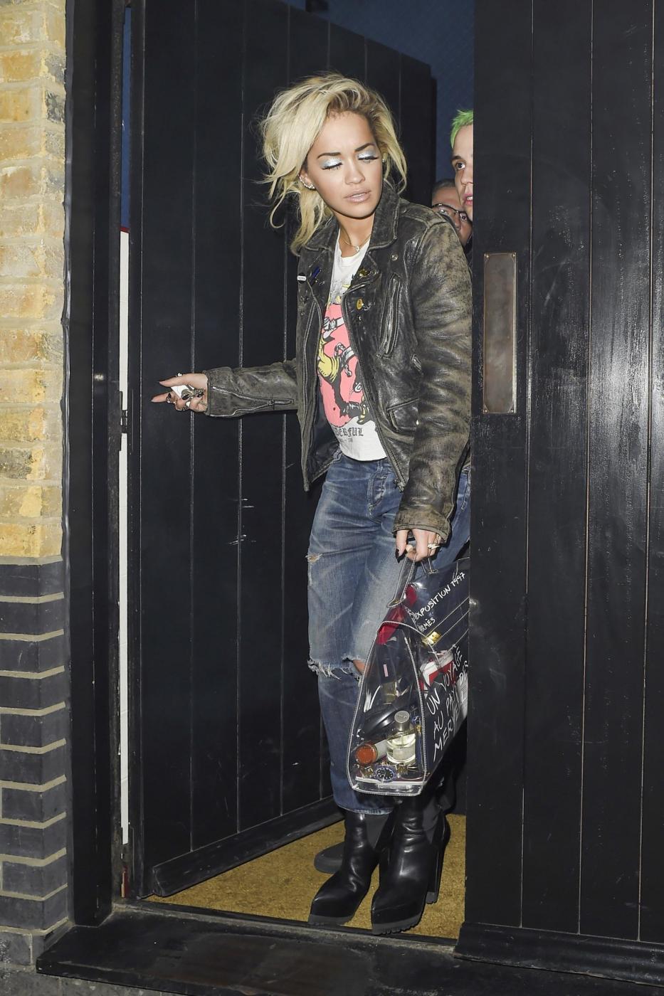 LONDRA – Rita Ora insieme al fidanzato Ricky Hil a Londra. La coppia è stata paparazzata all’uscita del ristorante Chiltern Firehouse. Jeans, giacchetto di pelle, borsa trasparente e capelli spettinate per lei, capigliatura verde per lui.