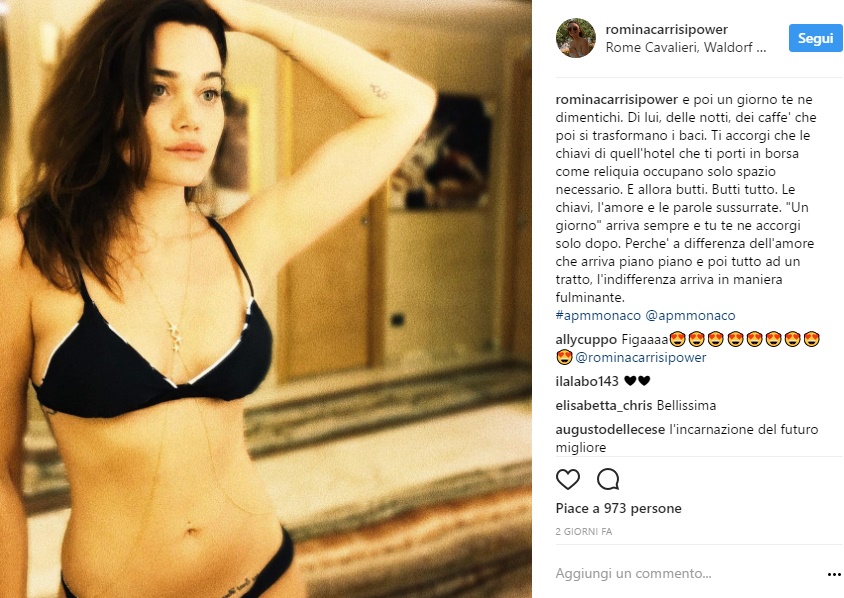 ROMA – Romina Carrisi, sfogo amaro: la frase spiazza FOTO. Disillusa, lucida ed estremamente sensuale: Romina Carrisi, figlia di AlBano e Romina Power, sorprende i suoi fan su Instagram con una foto che fa discutere. L’attrice ha postato uno scatto in cui appare in lingerie super sexy, sfoggiando il suo fisico al top. A far preoccupare i fan però è la frase che la figlia di AlBano ha scritto a corredo della foto. Un pensiero amaro, quasi uno sfogo che sembra far riferimento a qualcuno, probabilmente ad un amore che non c’è più e a cui, finalmente, è riuscita a voltare le spalle. Romina Carrisi ha scritto: