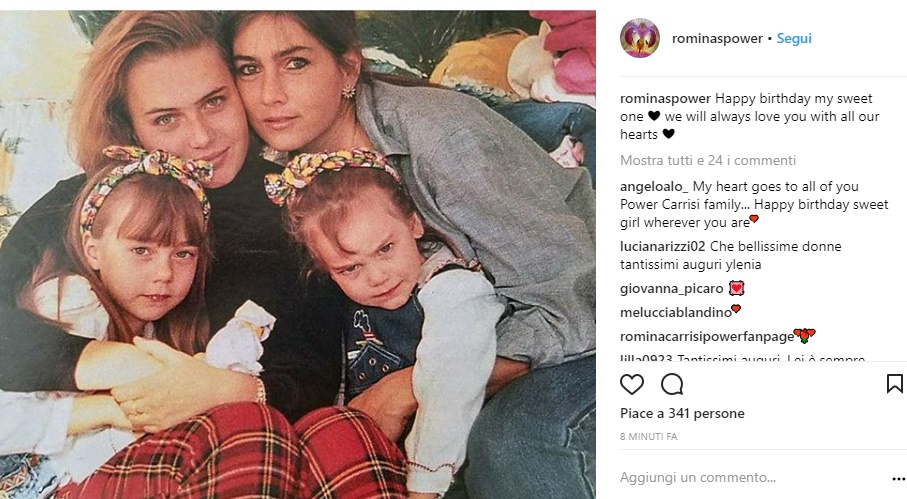 Oggi 29 novembre 2017 Ylenia avrebbe compiuto 47 anni e mamma Romina ha voluto ricordare con una foto su Instagram la ricorrenza speciale. Uno scatto in cui la cantante, giovanissima, appare insieme alle sue 3 figlie: Ylenia, Romina e Cristel Carrisi. Felici, spensierate. A corredo della foto, una dedica all’amata figlia mai dimenticata: