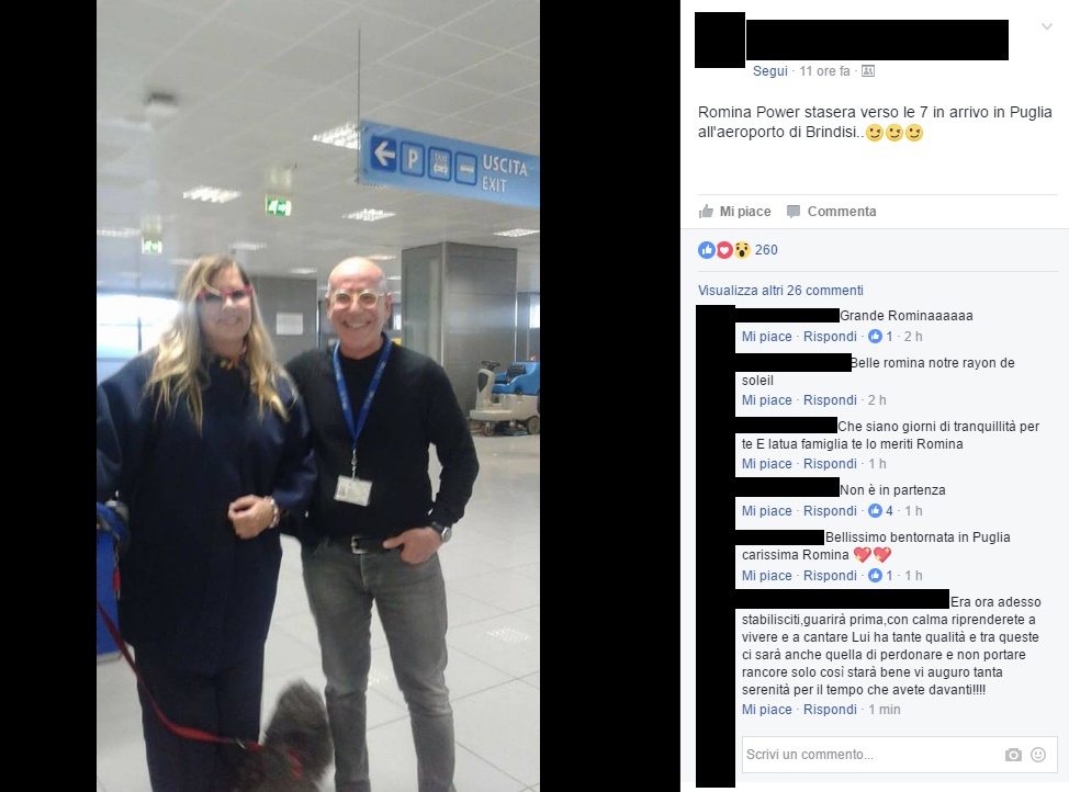 Ormai erano diversi anni che la cantante non tornava nella terra di Albano. La vicenda ha immediatamente scatenato i fan della storica coppia Albano e Romina che, nonostante siano ormai molti anni che i due non sono più insieme, sperano sempre di rivedere unita la coppia più bella e famosa d’Italia. Sui Social si sono diffuse alcune foto di fan di Romina che hanno pizzicato la cantante in Puglia e tutti si sono posti la fatidica domanda: cosa ci fa in Puglia? È forse andata a trovare Albano dopo l’ischemia che l’ha colpito pochi giorni fa e che lo ha costretto in ospedale una seconda volta dopo l’infarto di Dicembre scorso? I fan non stanno nella pelle: dopotutto il loro sogno è quello di rivederli insieme e il fatto che Albano abbia una storia d’amore con Loredana Lecciso ormai da più di 10 anni non sembra essere preso in considerazione dai fan di Romina e il cantante pugliese.