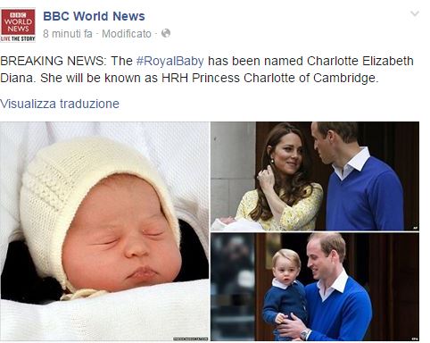 “Sua altezza reale la duchessa di Cambridge ha dato alla luce una bambina alle 8.34 del mattino”.