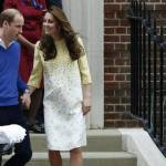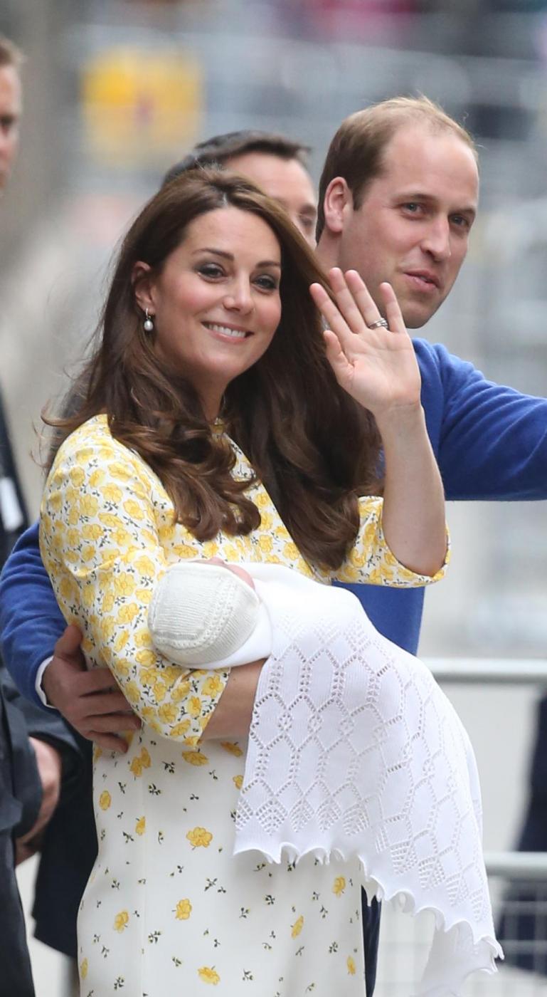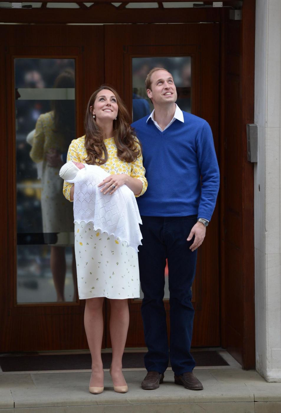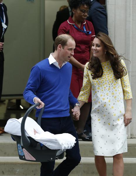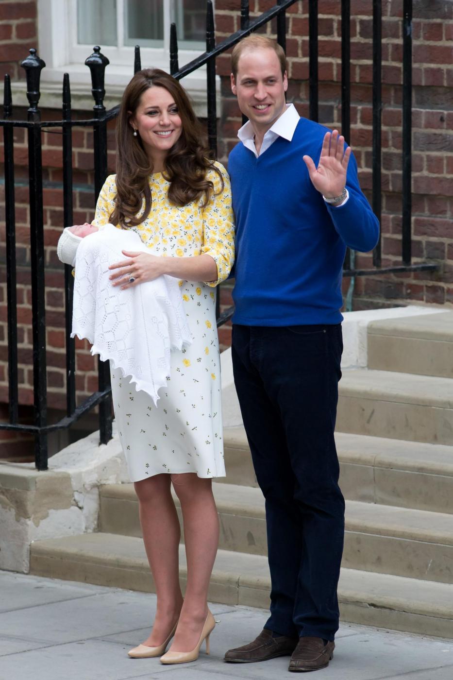 The Duke and Duchess of Cambridge leave the Lindo Wing of St Mary's Hospital in London with their newborn daughter, the Princess of Cambridge. PRESS ASSOCIATION Photo. Picture date: Saturday May 2, 2015. See PA story ROYAL Baby. Photo credit should read: Gareth Fuller/PA Wire