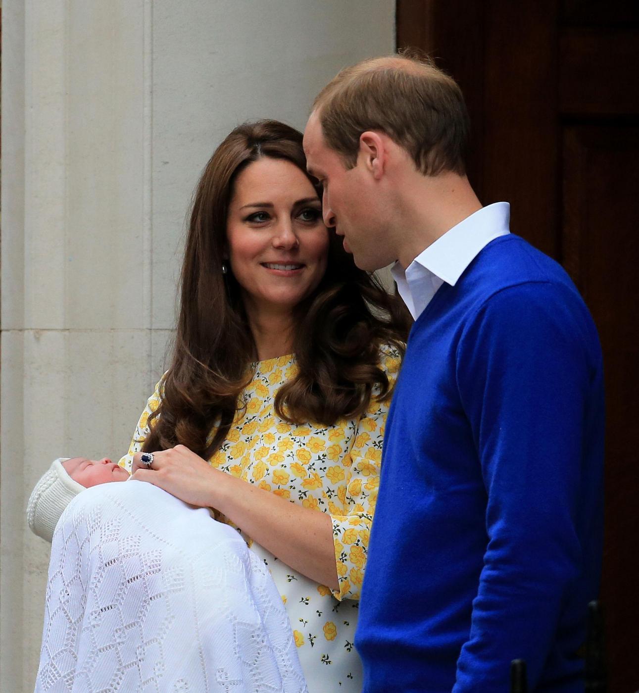 The Duke and Duchess of Cambridge outside the Lindo Wing of St Mary's Hospital in London, with their newborn daughter The Princess of Cambridge. PRESS ASSOCIATION Photo. Picture date: Saturday May 2, 2015. See PA story ROYAL Baby. Photo credit should read: Daniel Leal-Olivas/PA Wire