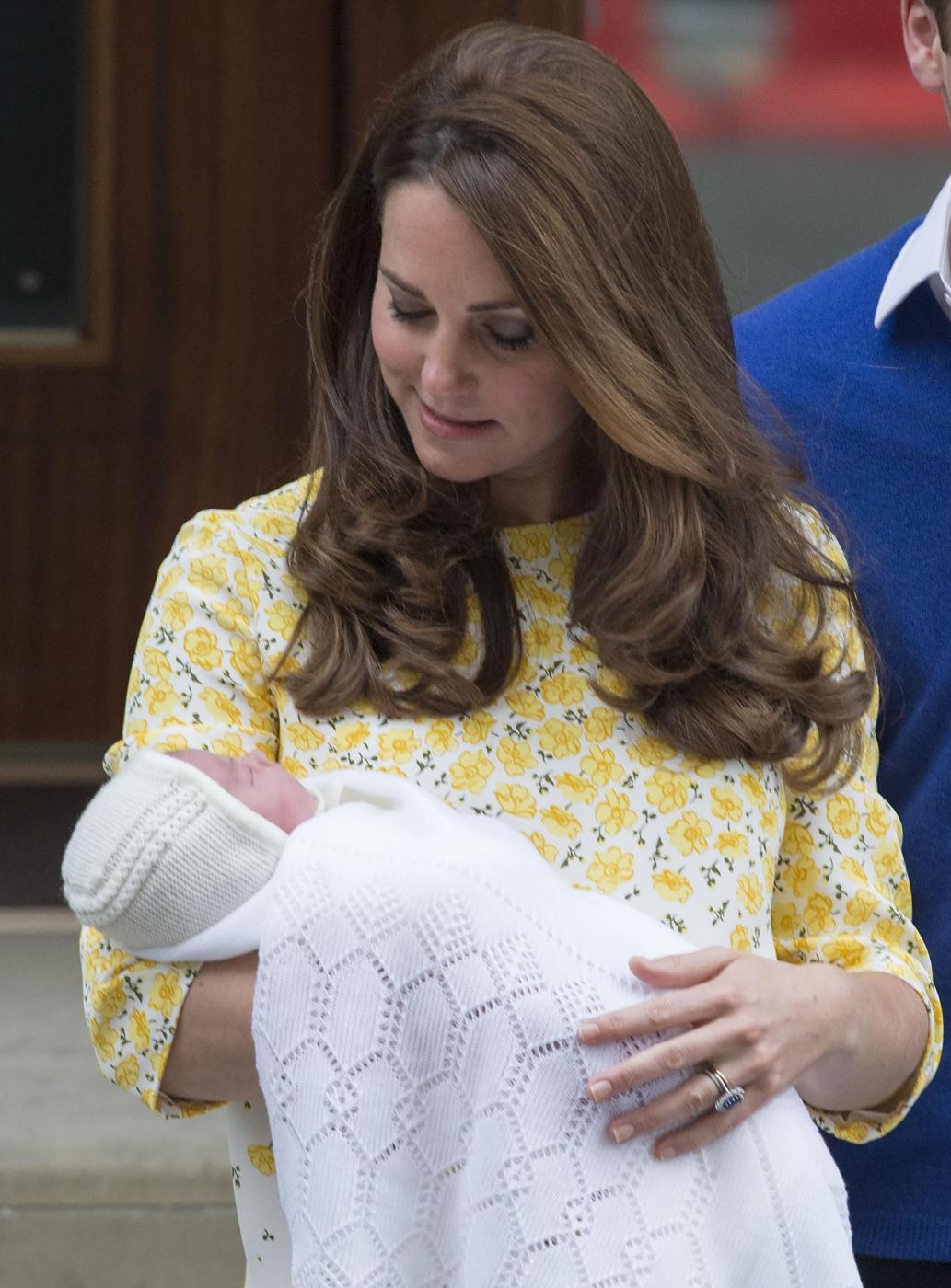 The Duchess of Cambridge leaves the Lindo Wing of St Mary's Hospital in London with her newborn daughter, the Princess of Cambridge. PRESS ASSOCIATION Photo. Picture date: Saturday May 2, 2015. See PA story ROYAL Baby. Photo credit should read: Gareth Fuller/PA Wire