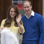 Britain's Prince William, left, and Kate, Duchess of Cambridge, hold their newborn daughter as they as they leave St. Mary's Hospital's exclusive Lindo Wing, London, Saturday, May 2, 2015. The Duchess gave birth to the Princess on Saturday morning. (ANSA/AP Photo/Alastair Grant)