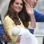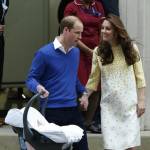 The Duke and Duchess of Cambridge and the newborn Princess of Cambridge as they leave the Lindo Wing of St Mary's Hospital in London. PRESS ASSOCIATION Photo. Picture date: Saturday May 2, 2015. See PA story ROYAL Baby. Photo credit should read: Dominic Lipinski/PA Wire