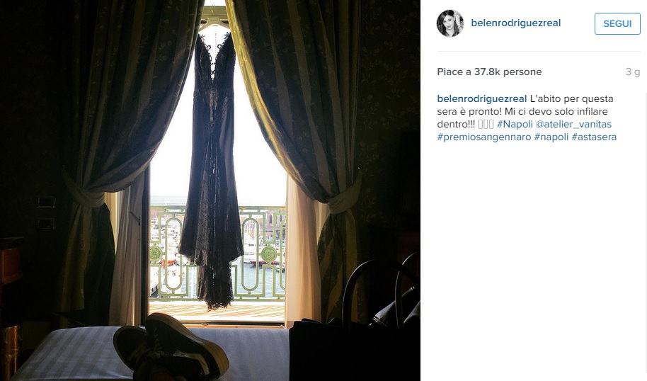 La bella argentina ha postato anche la foto dell’inaugurazione del restauro della colonna spezzata in piazza Vittoria a Napoli, insieme al sindaco Luigi de Magistris, quella del premio e quella del momento della premiazione. E per i suoi fan due gradite sorprese: l’immagine del vestito della serata e un selfie con lo sfondo del golfo. Sempre tra le foto recenti, da segnalare una che ha fatto impazzire i fan in cui una Belen vampira” dà un bacio a Stefano.