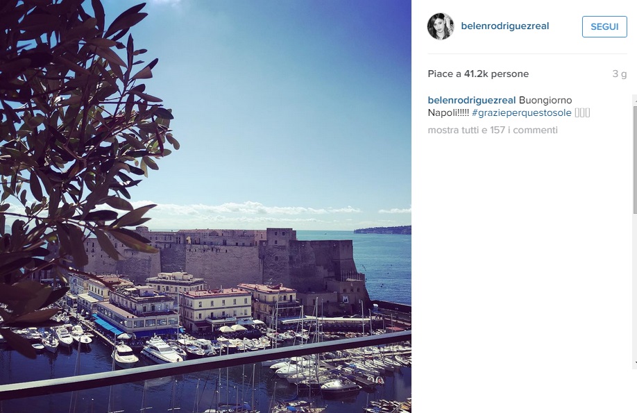 NAPOLI – Prima ha sposato un napoletano doc, Stefano De Martino, e ora Belen Rodriguez dichiara amore assoluto per la città di Napoli anche sui social. La showgirl argentina è stata premiata con il San Gennaro Day, lo storico riconoscimento assegnatole perché considerata “un’opera d’arte vivente” e lei ha ricambiato la passione per questi luoghi pubblicando su Instagram alcuni scatti della sua avventura napoletana.