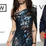 SANREMO – Sanremo 2015, Conchita Wurst ospite: tutti i look della drag queen. Tacchi a spillo, gonne, abiti griffati, strascico, paillettes e… tanta barba. Questa la caratteristica principale che ha reso popolare la cantante dopo la sua vincita all’Eurovision Song Contest 2014. Conchita Wurst, pseudonimo del personaggio inventato da Thomas “Tom” Neuwirth, (questo il vero nome dell’artista) è un giovane cantante austriaco. Nato a Gmunden, in Austria, nel 1988, prima di travestirsi, si è esibito come uomo con il suo nome vero per alcuni anni come cantante solista e sia con una band. Il suo personaggio ibrido è nato solo nel 2011. La scelta del cognome non è casuale: in Germania e in Austria, come da lui stesso affermato, la parola “wurst” viene utilizzata in sostituzione dell’espressione “non me ne importa niente”.