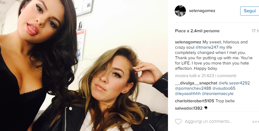 Un messaggio non certo destinato a chiunque, soprattutto considerando che Selena Gomez si è sempre contraddistinta per la sua discrezione e attenta selezione per quanto riguarda le amicizie. I fan si sono immediatamente allarmati perché, fino a poco tempo fa, un messaggio del genere lo avrebbe riservato solo alla sua cara amica Taylor Swift. Cosa è successo tra le due? Hanno forse litigato? E se no, come la prenderà la sua amica del cuore? Secondo alcuni rumors sembra che Taylor si sia molto ingelosita. E dire che solo qualche giorno fa, in occasione del compleanno di Selena, Taylor ha lodato ancora una volta la cara amica Selena Gomez. La cantantr aveva pubblicato una foto in cui le due amiche formano un cuore con le mani. Nella didascalia della foto, Taylor ha scritto: