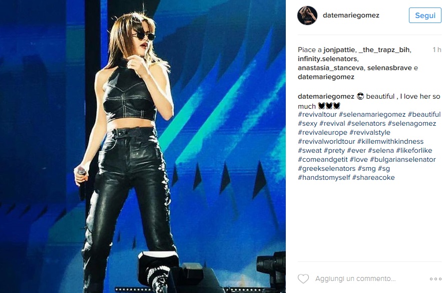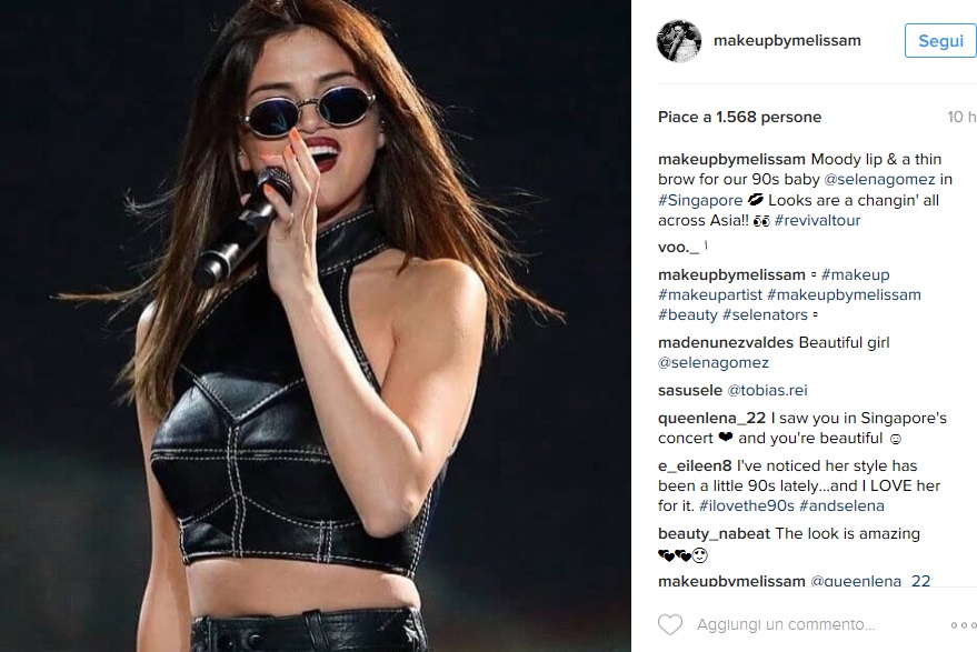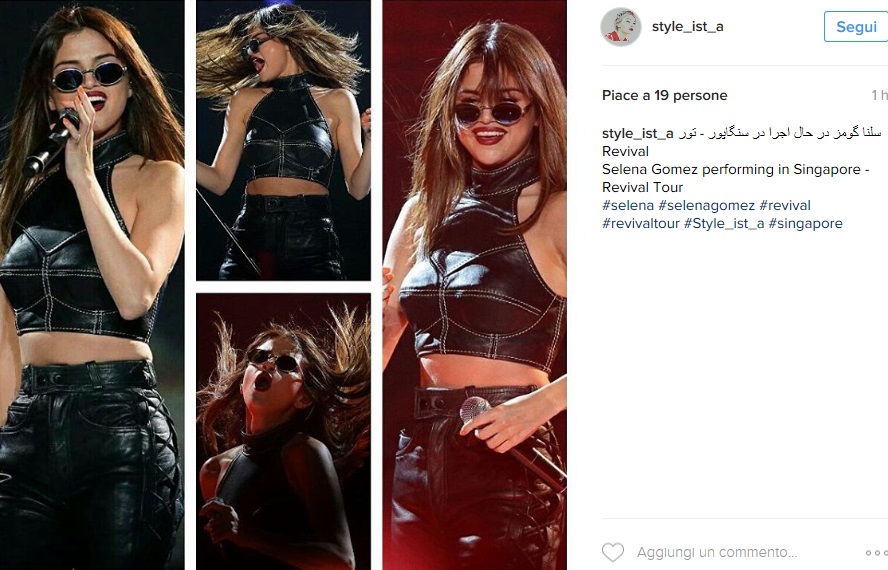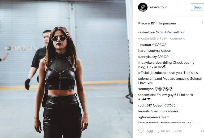 SINGAPORE – Selena Gomez magrissima: top in pelle e pancia in vista FOTO. Ha raggiunto la tappa di Singapore il Revival Tour, il secondo tour mondiale di Selena Gomez come solista, in supporto all’album Revival pubblicato nel 2015. Per l’occasione, Selena Gomez ha sfoggiato un look grounge dal sapore vintage che strizza l’occhio agli anni ’90: completo in pelle nera formato da croc-top e pantaloni con lacci, pettinatura anni ’90 e make up underground, Selena ha mandato letteralmente in visibilio i fan.