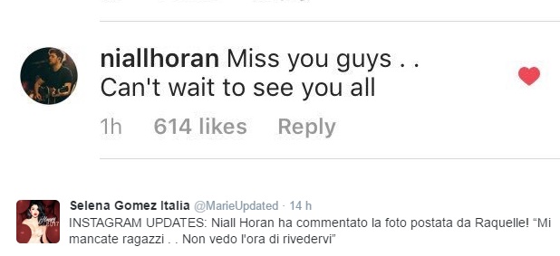 Il messaggio ha letteralmente mandato fuori di testa le fan di Selena che hanno subito iniziato a fantasticare sul motivo del messaggio. Dopotutto lui è single, lei è single… sembra così semplice! Potrebbe essere che i due si diano una seconda possibilità! Non è la prima volta, negli ultimi tempi, che Selena e Niall hanno un contatto. A dicembre scorso era già scoppiato il gossip di un loro presunto riavvicinamento dopo che i due cantanti si erano scambiati un tenero abbraccio dietro le quinte degli American Music Awards 2016. Un gesto che aveva riacceso le speranze dei fan, considerando che i due artisti hanno avuto una storia in passato. Poi non si è più parlato della questione ma adesso la voce di un ritorno di fiamma si fa sempre più insistente, visto che è abbastanza raro che Niall decida di commentare delle foto su Instagram. E voi cosa ne pensate, vedremo ancora Niall e Selena insieme?