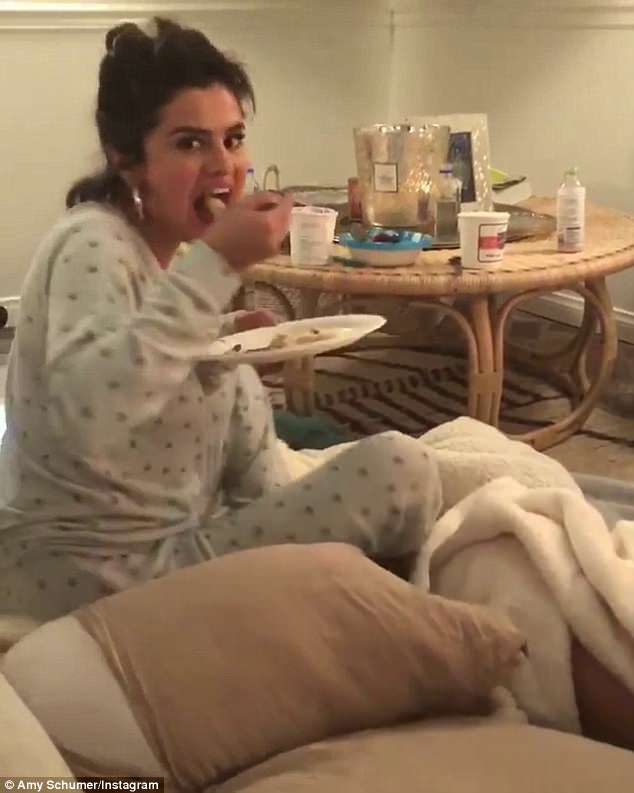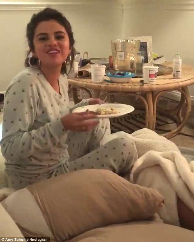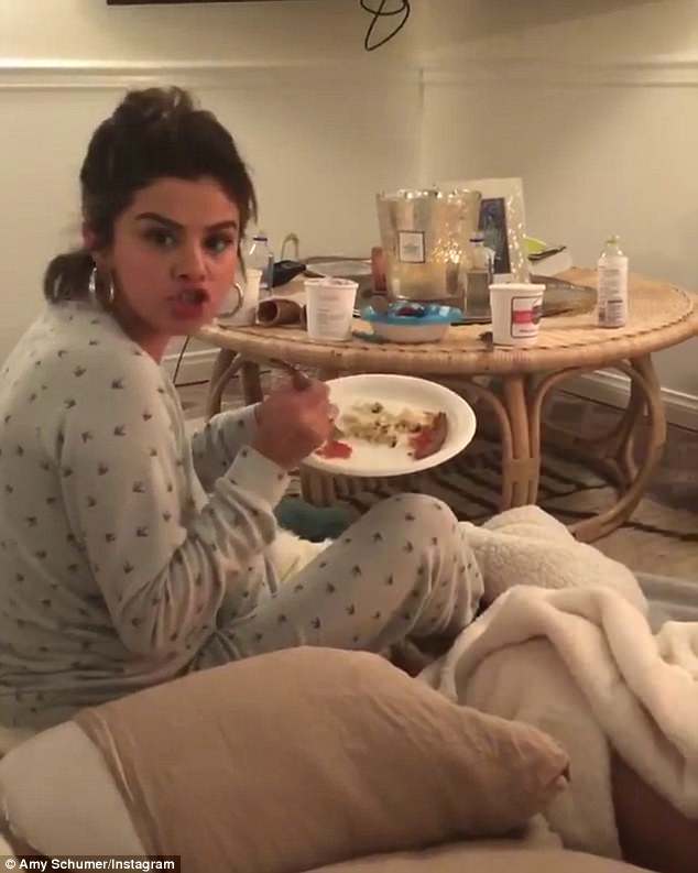 La cantautrice indossa il pigiamone ed è seduta su un divano. Accanto a lei l’amica Caroline. Spiega Selena: “Abbiamo preso la pizza e una mega porzione di enchilada (tortilla messicana ripiena di carne, formaggio, verdura o fagioli, arrotolata su se stessa e condita con salsa chili ndr)”. Selena spiega di aver preso del gelato alla lavanda, alla fragola, qualche altro gusto e dei coni con cui accompagnare il tutto.