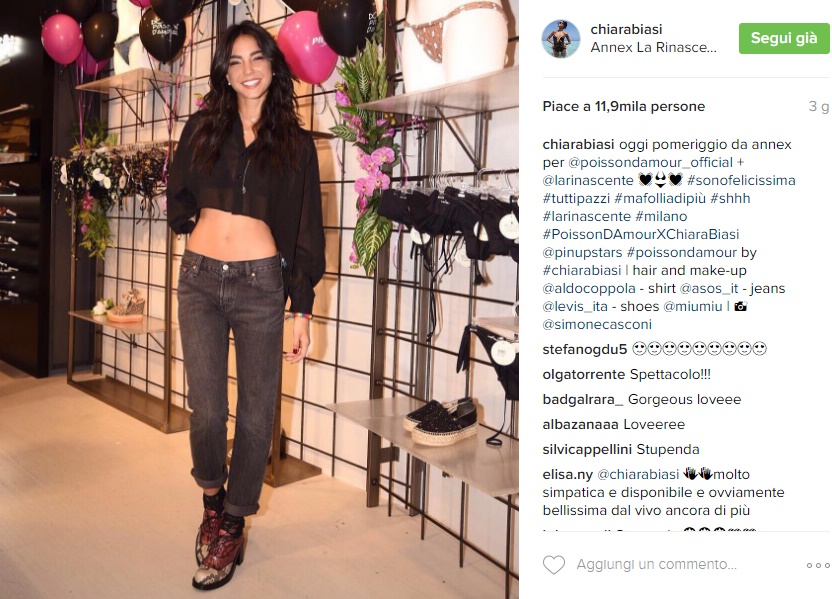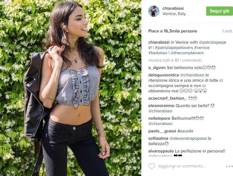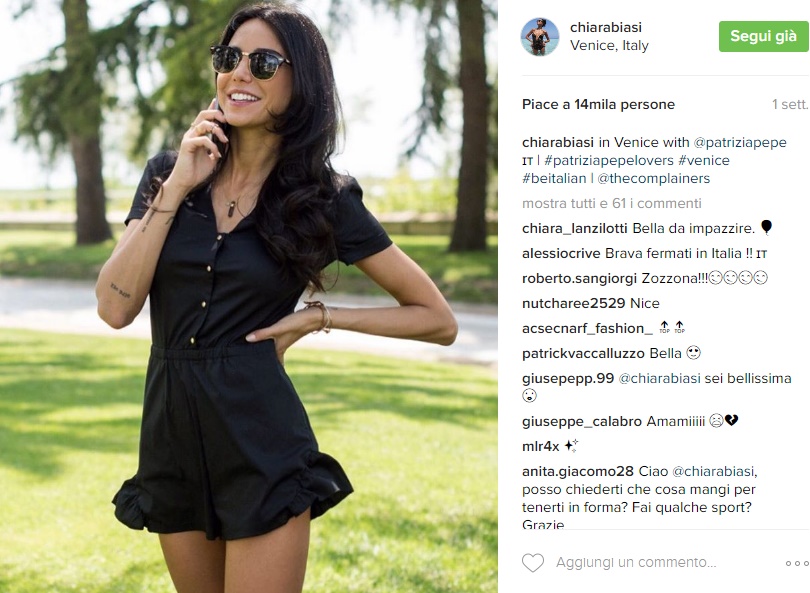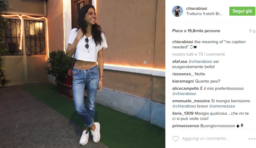 Ma chi è Chiara Biasi, questa ragazza da 1 milione di follower su Instagram che sembra aver fatto breccia nel cuore di Simone Zaza? Classe ’89, Chiara Biasi ha 27 anni ed è nata a Pordenone. Molto amica della blogger Chiara Ferragni, ha aperto il suo primo blog nel 2008 cercando di affermarsi nel mondo della moda. Con il tempo, Chiara decide investire sulla sua immagine diventando testimonial di se stessa e pubblicizzando, attraverso scatti fotografici, accessori e abbigliamento di vari brand. Chiara Biasi è stata spesso al centro di gossip e discussioni sia per via della sua presunta eccessiva magrezza (167 cm di altezza per 51 kg, in molti sul web ritengono che abbia problemi di salute) sia per via della sua chiacchieratissima storia con l’ormai ex fidanzato Oscar Branzani. Durante un’intervista, recentemente Chiara ha raccontato su se stessa: