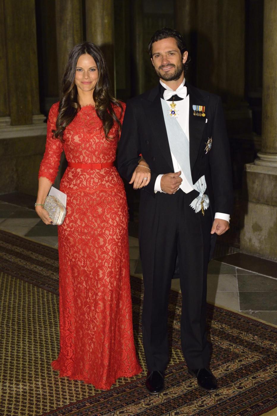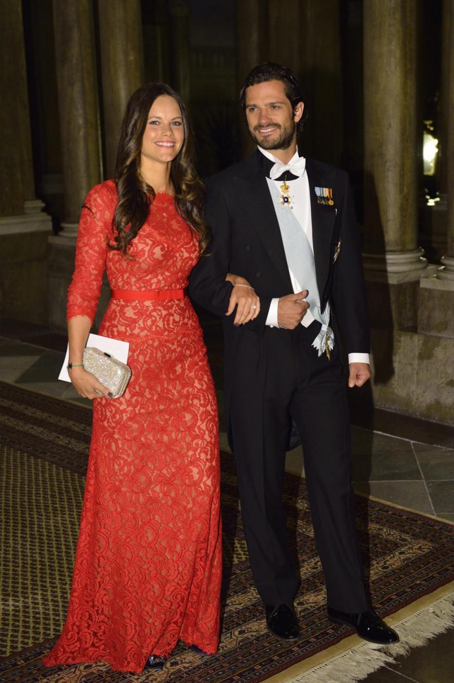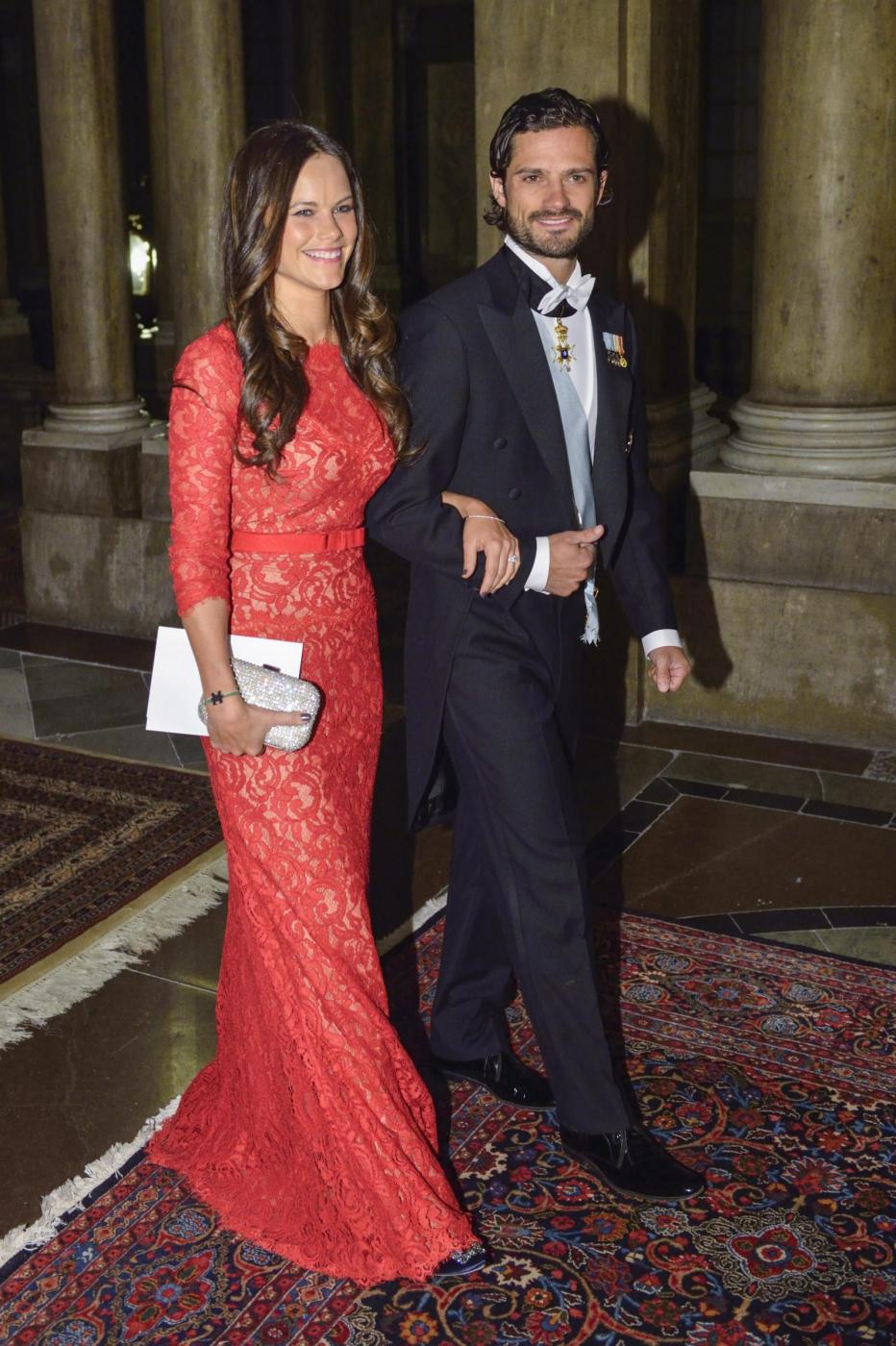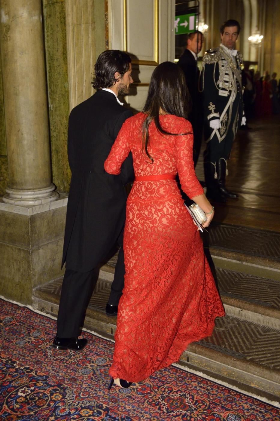 STOCKHOLM 20141118 Sweden's Prince Carl Philip brought his fiance Sofia Hellqvist to an official function when they arrived together to Tuesday's Royal banquet at Stockholm Palace Photo: Henrik Montgomery / TT / code 10060 I reali di Svezia eleganti per un banchetto Scanpix LaPresse -- Only Italy